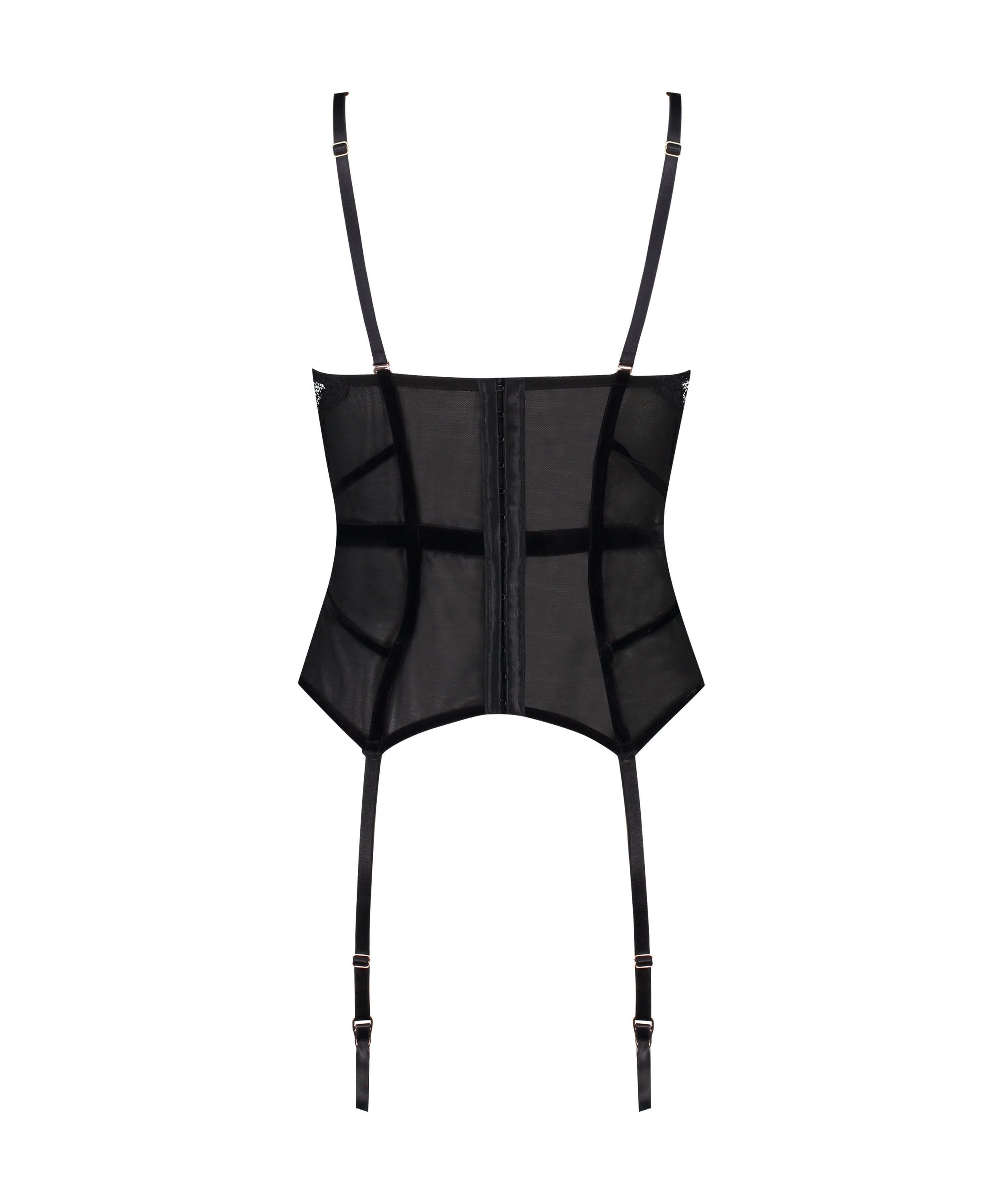 Vous vous sentirez super sexy et vous serez rayonnante dans ce bustier ! Le bustier présente des détails sexy en velours et est recouvert de maille et de dentelle. A associer avec une jolie paire de bas et un slip assorti. Fait partie de la collection avec Rebecca Mir.