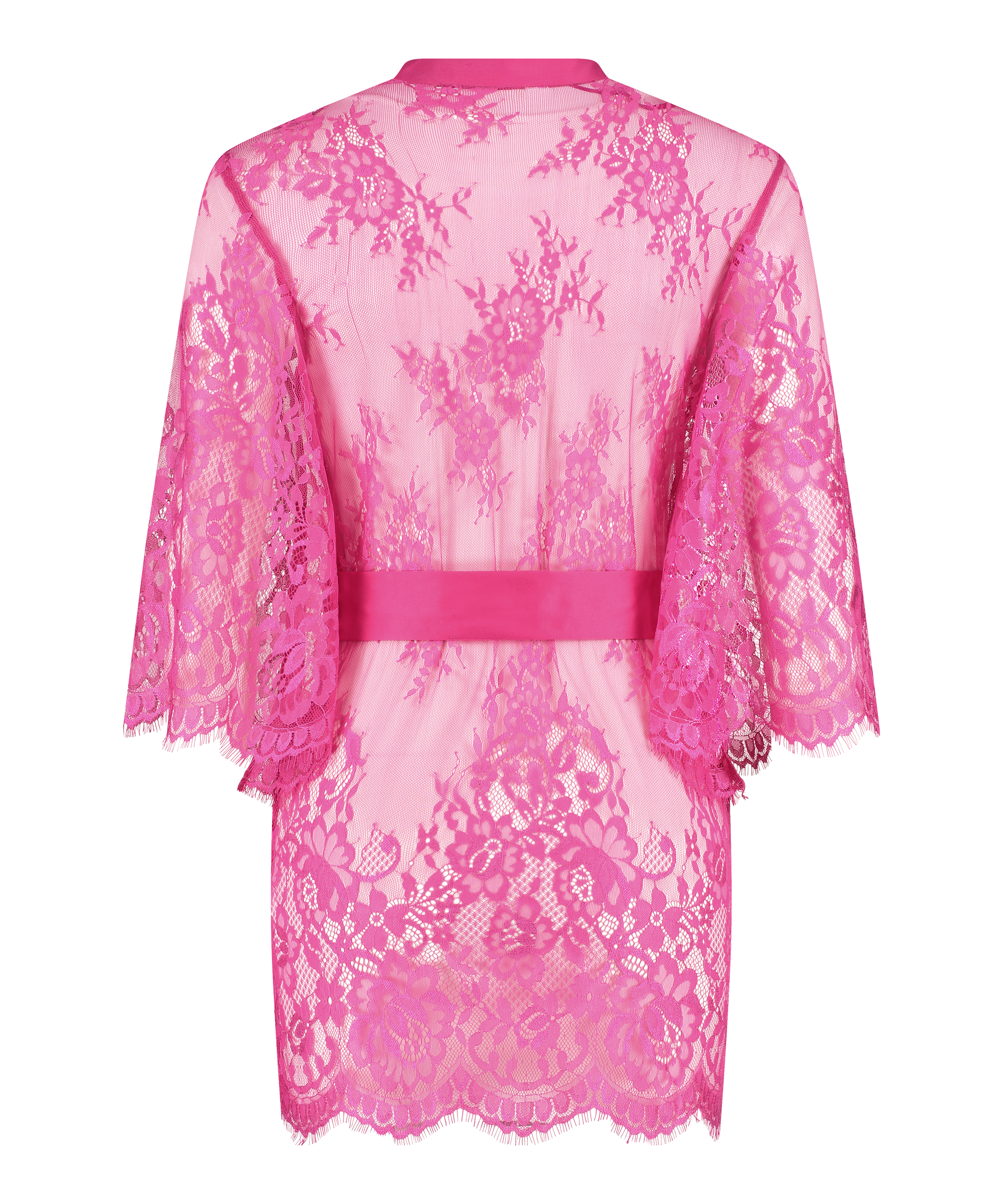 Ce kimono a tout pour vous plaire : il est en dentelle, est très sexy et très féminin ! Modèle réalisé dans une qualité dentelle transparente, à jolis détails en soie. Il se boutonne devant.