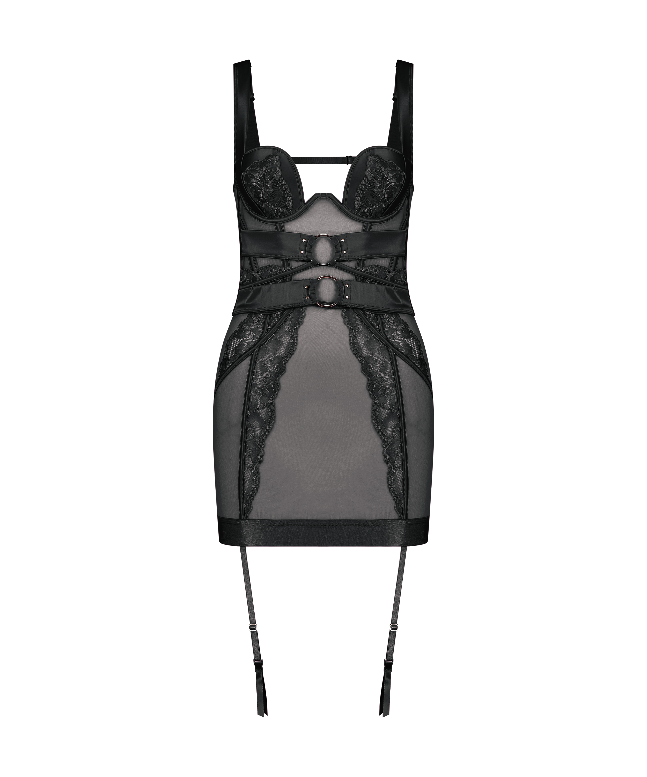 À mi-chemin entre la robe et le bustier, cette nuisette remarquable est une pièce langoureuse qui ne manquera pas de rehausser vos tenues ! Ce modèle est doté d'une armature qui aide à créer une silhouette flatteuse. La finition satinée douce et chic des bretelles ajoute une note de féminité. Des œillets vous permettront de styliser cette nuisette à votre guise. Associez-la à la culotte assortie et à une paire de bas pour un look captivant. Cet article fait partie de la collection Private.