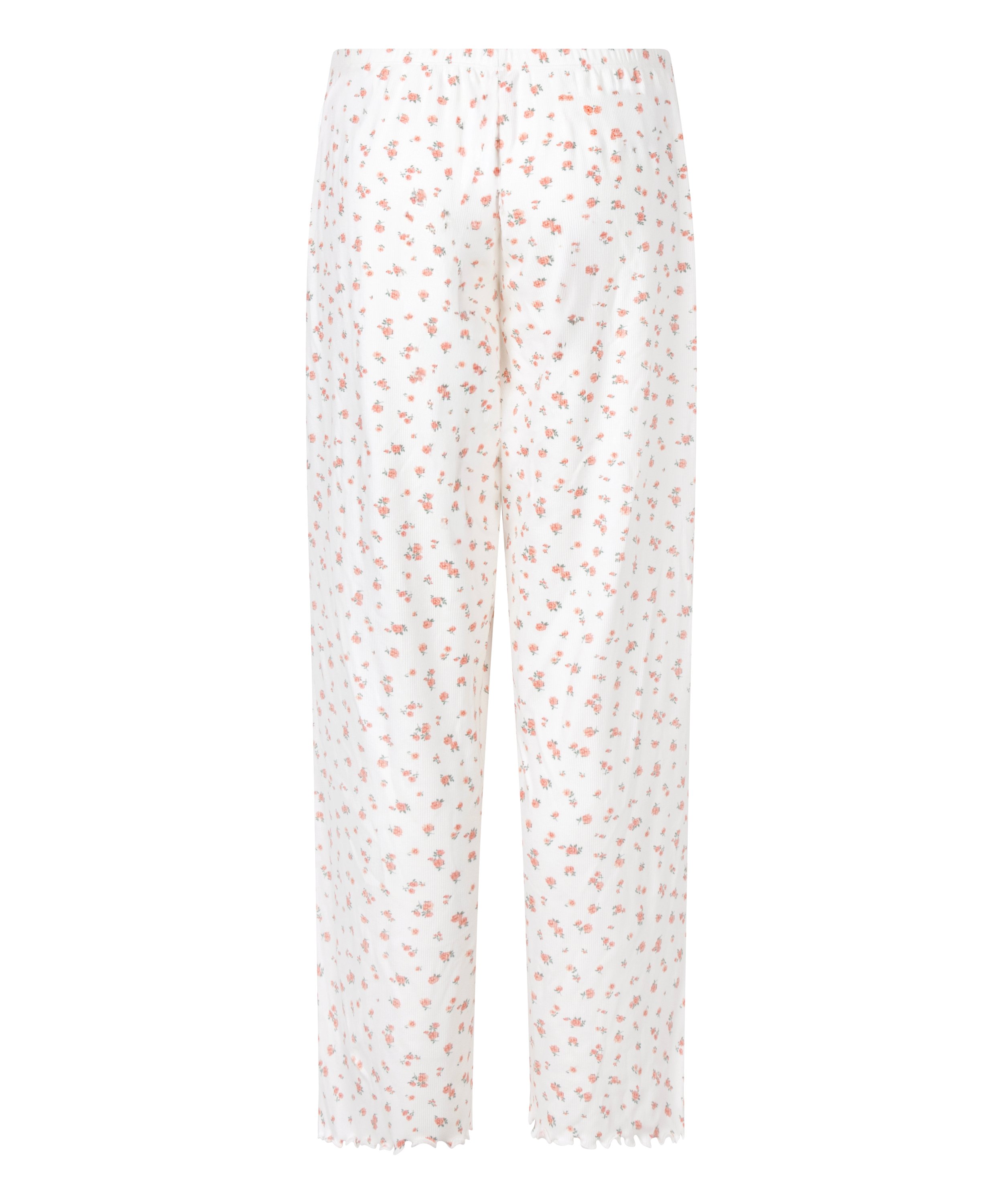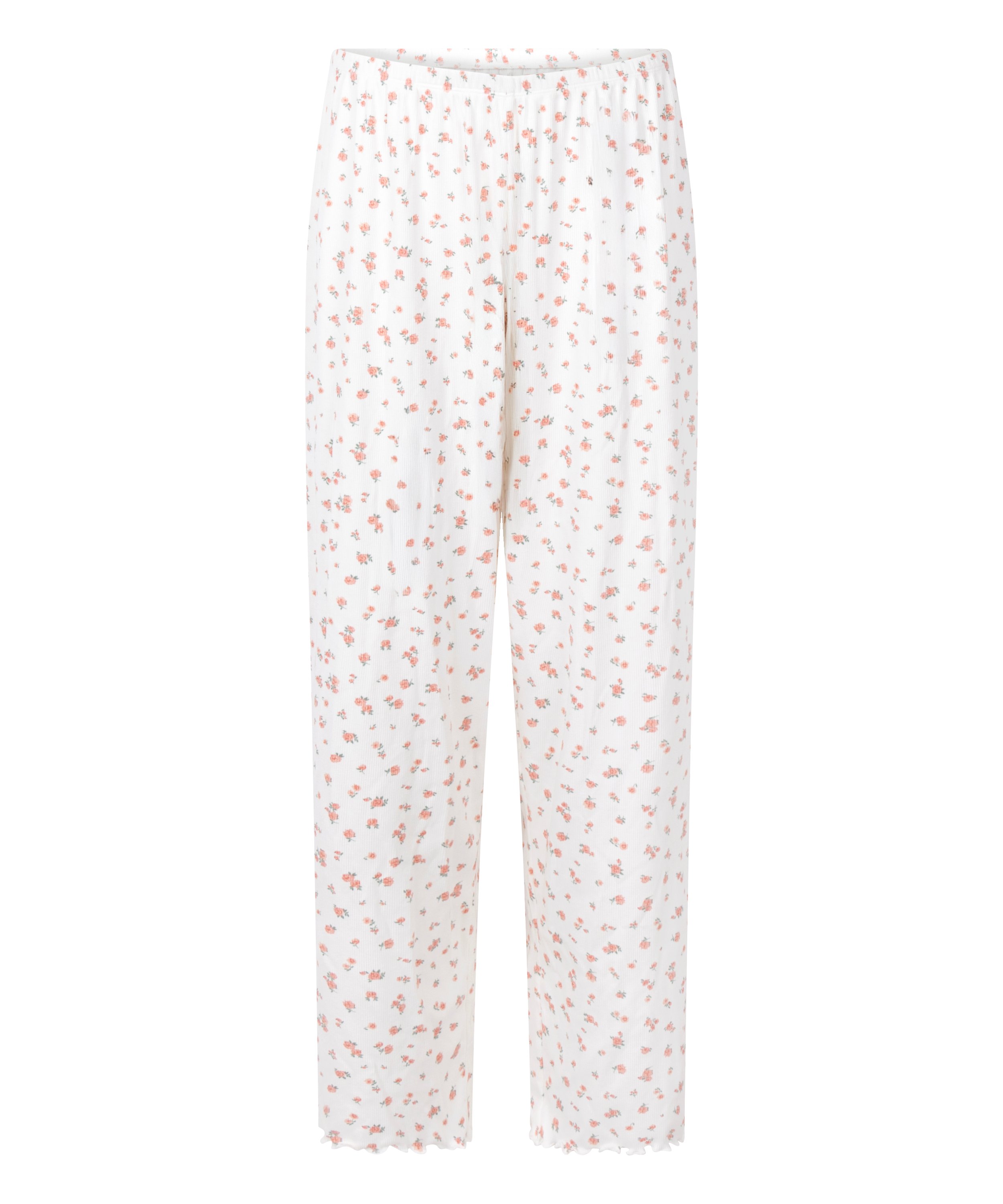 Un confort douillet avec une finition élégante ! Ce pantalon de pyjama côtelé présente une taille élastique extensible et des volants délicats à l'ourlet, ce qui le rend parfait pour les soirées décontractées et les nuits paisibles.