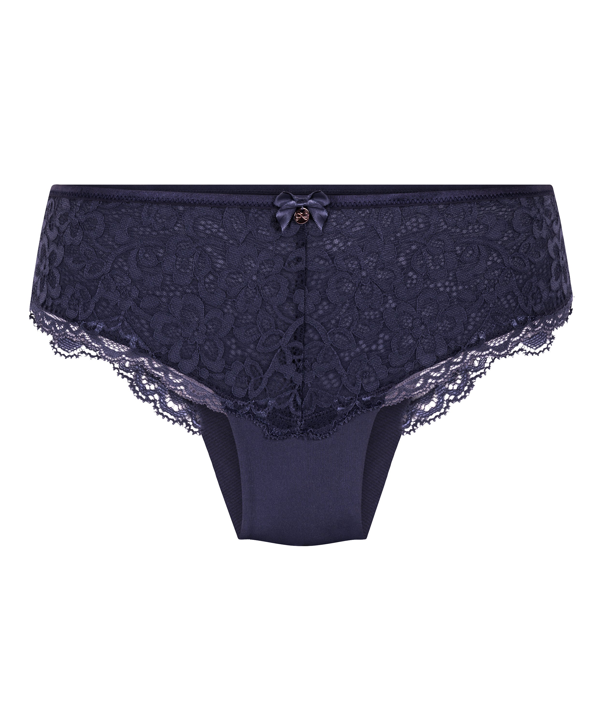 Slip brésilien entièrement décoré de dentelle, ce qui le rend encore plus sexy ! Il est également décoré d’un petit nœud charmant au milieu. À combiner avec le soutien-gorge assorti pour avoir la parure complète.