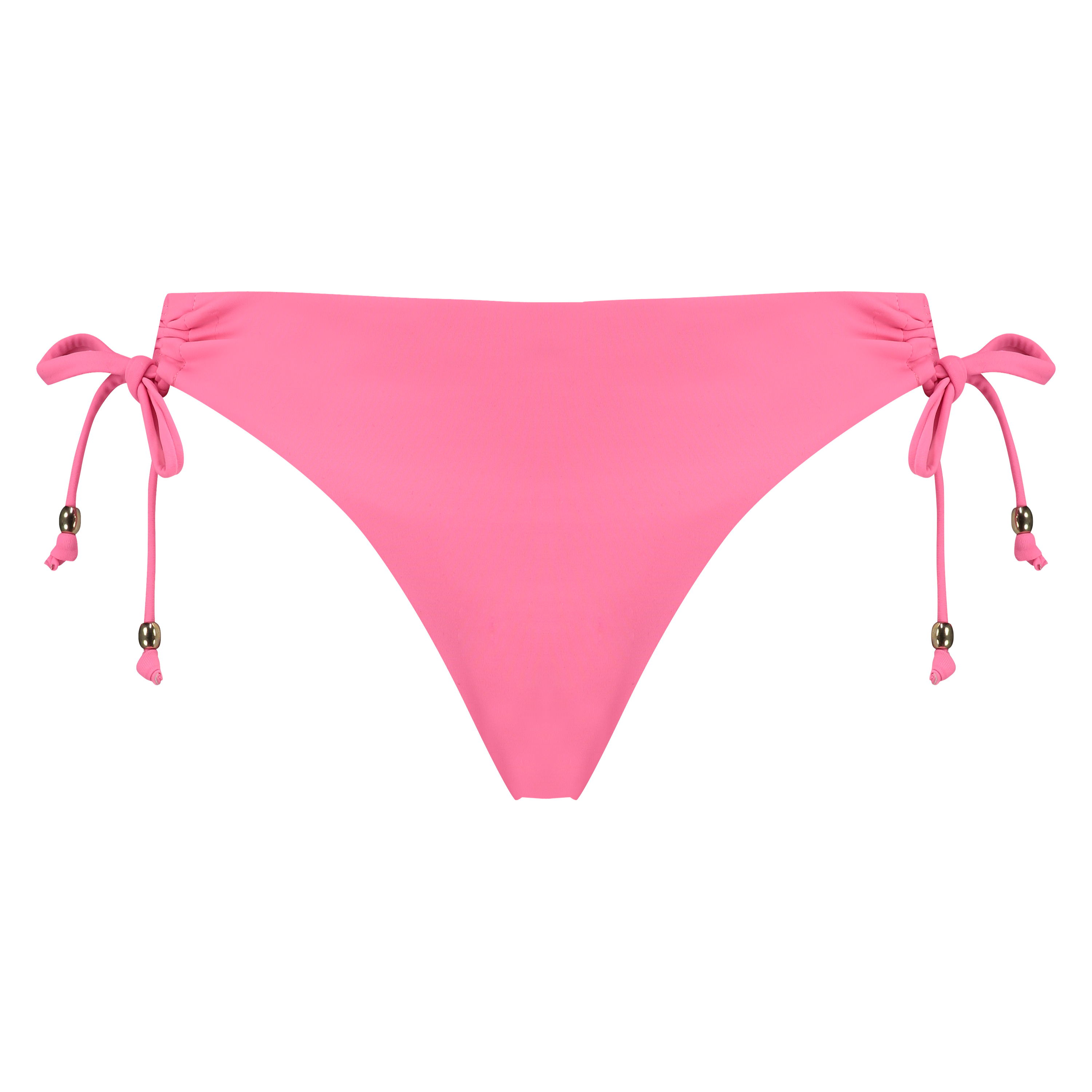 Le slip de bikini est noué sur les hanches. Des petites perles sont attachées aux extrémités des liens.