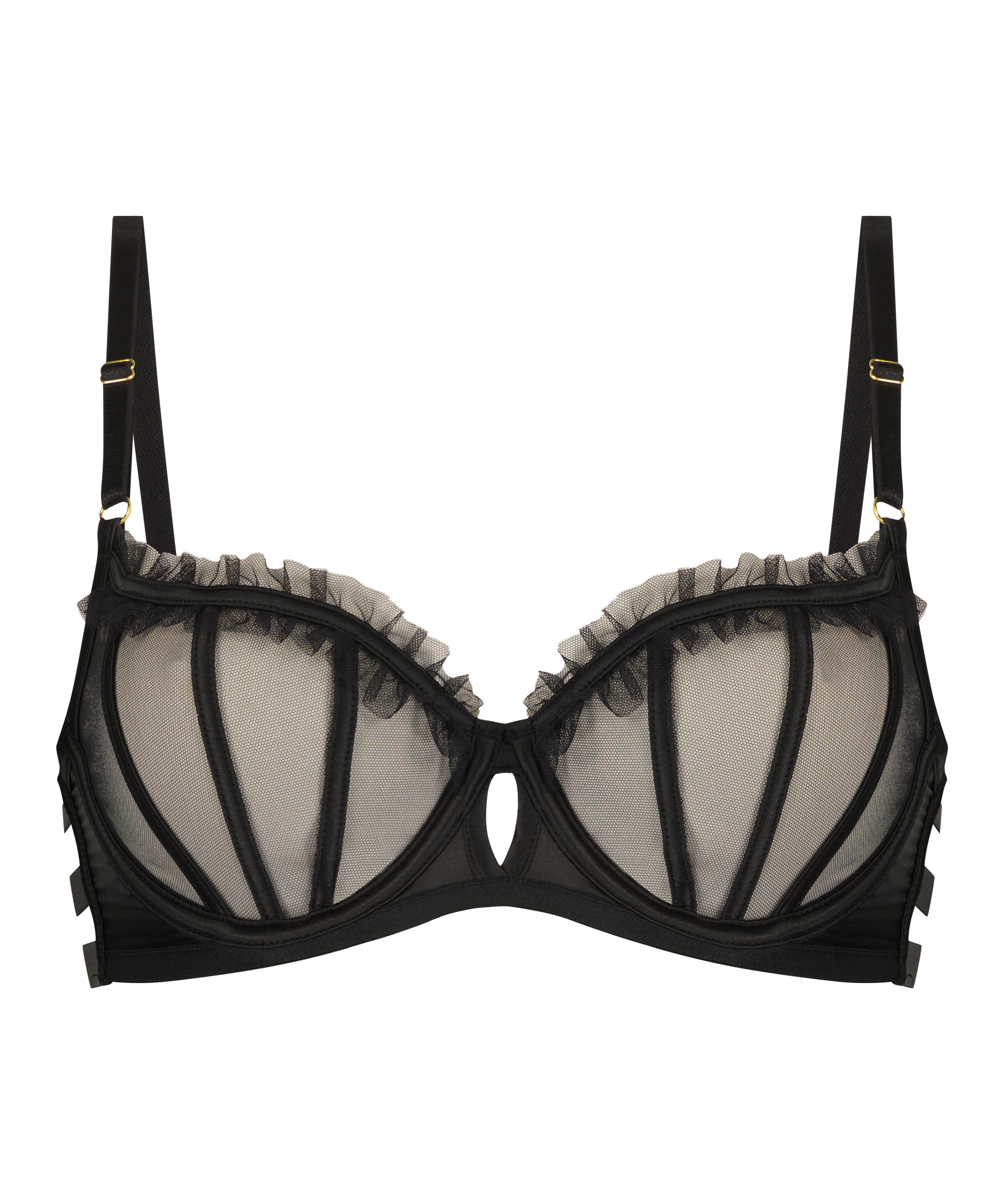 Un magnifique soutien-gorge sexy ! Le soutien-gorge Courtney est un soutien-gorge simple et délicat en maille fine avec des détails de volants qui ajoutent définition et forme à la pièce. Les bretelles sont réglables pour un ajustement parfait. Portez-le avec des articles assortis de la collection Private pour un look complet.