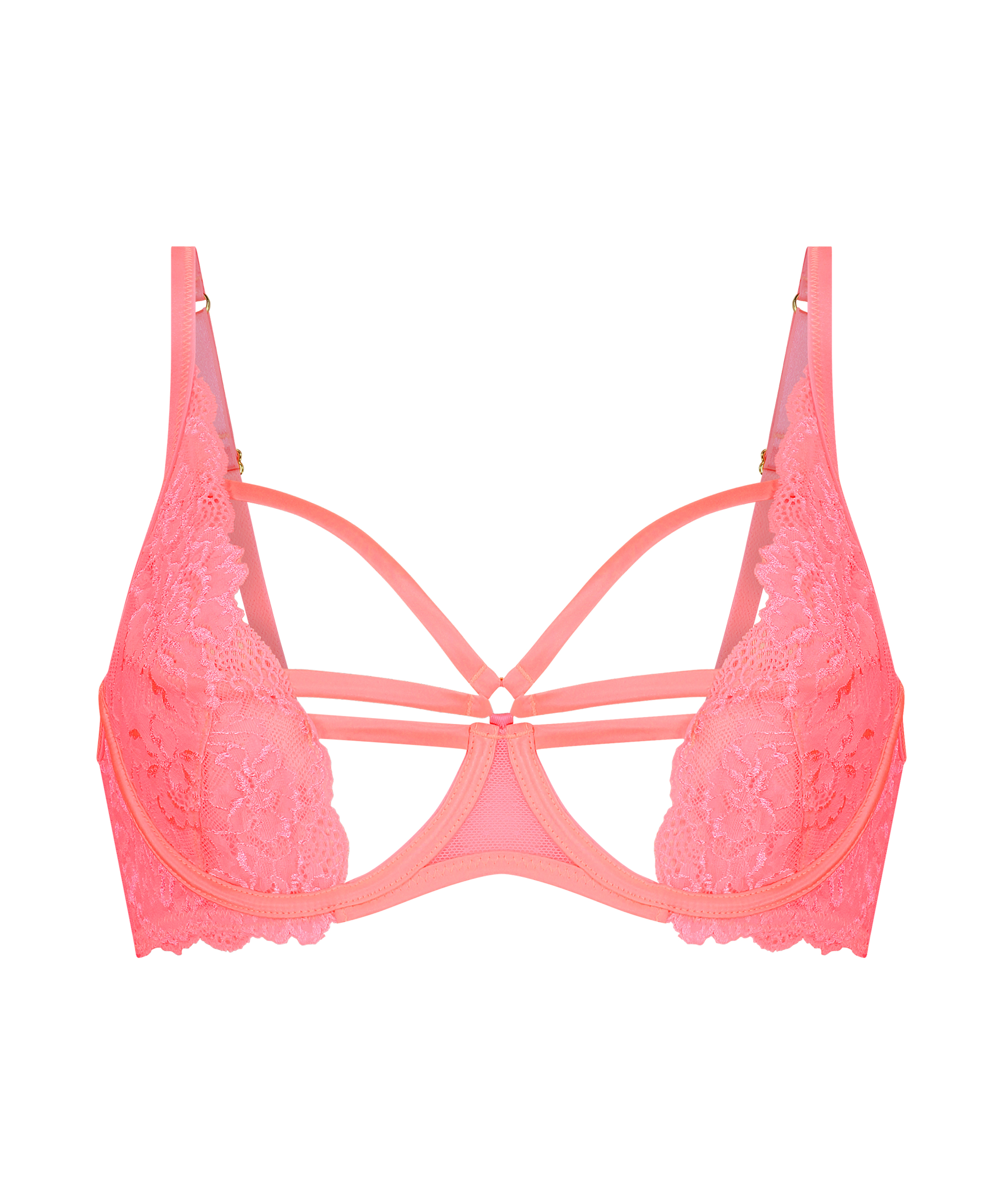 Soutien-gorge à lanières et dentelle très séduisant. Ce modèle dévoile une grande partie de votre silhouette et met bien en valeur vos courbes.