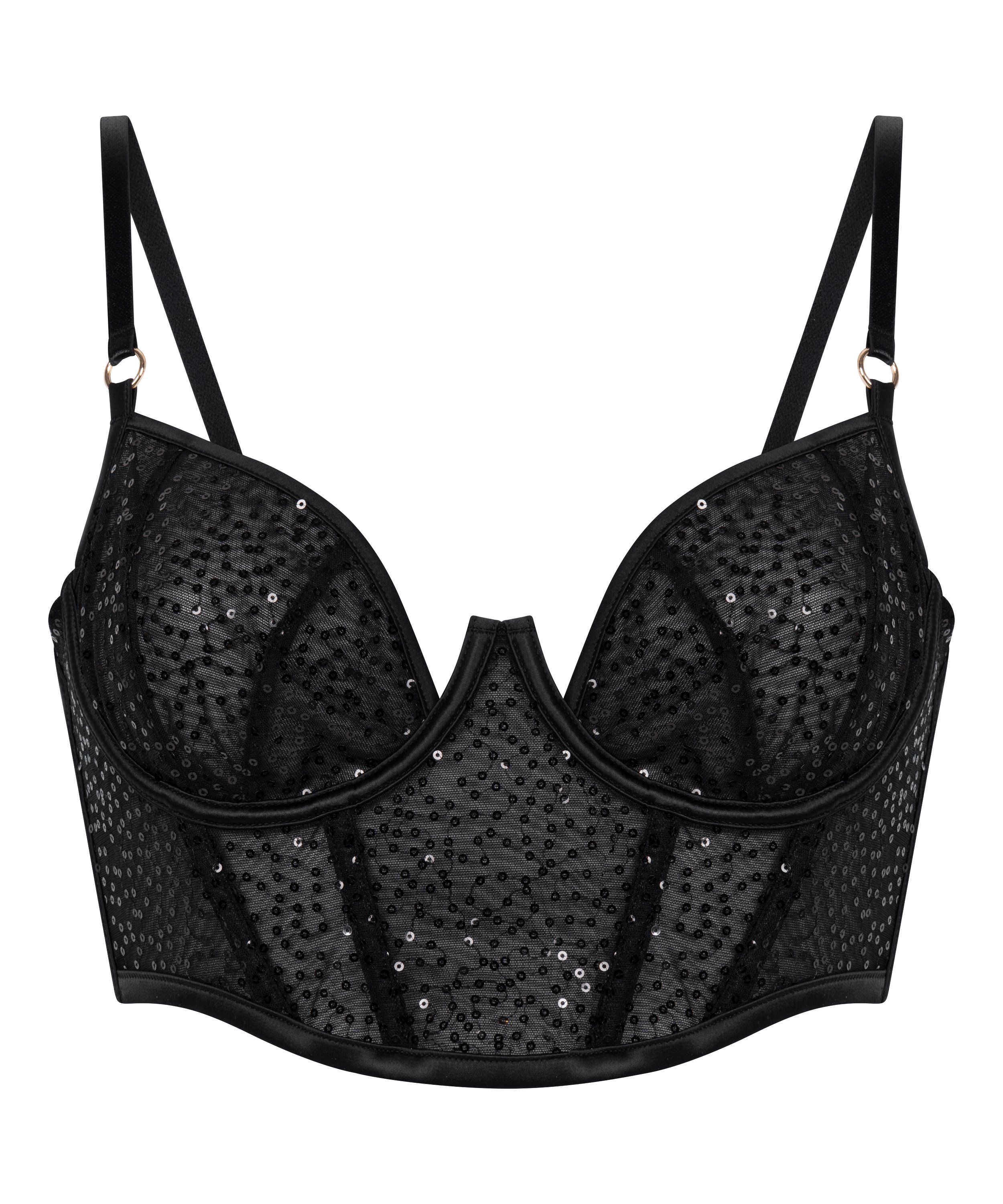 Faites-vous remarquer avec ce soutien-gorge, quand l'audace se mêle à la beauté. Créé pour sculpter et soutenir, ce soutien-gorge à armatures non rembourré présente une silhouette longline flatteuse qui met en valeur vos formes naturelles. Recouvert de paillettes scintillantes, il offre une brillance étincelante, et la coupe structurée offre confort et maintien. Associez-lui le bas assorti pour un look complet.