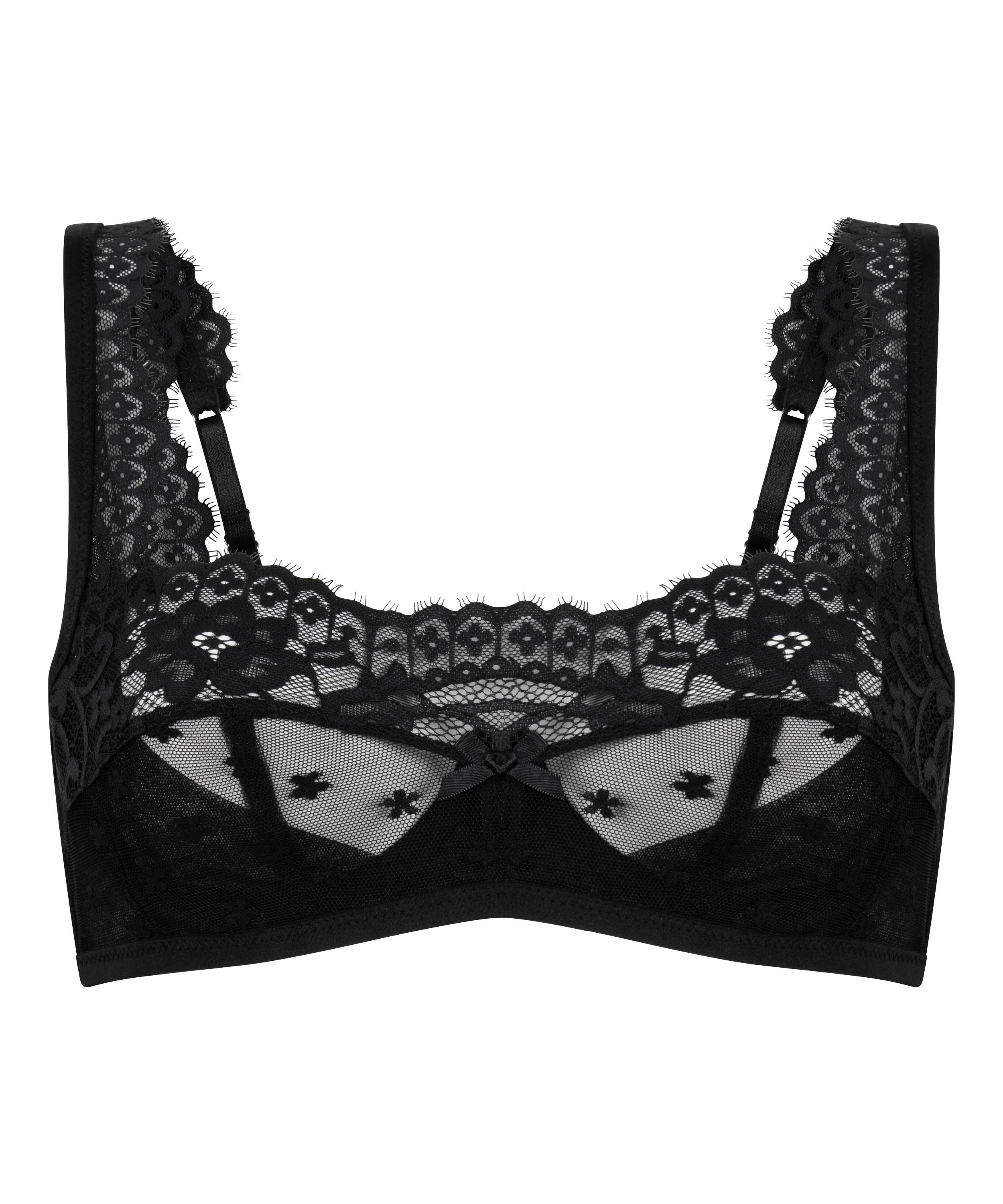Adoptez une élégance naturelle avec ce soutien-gorge sans armatures non rembourré conçu pour offrir un confort et un style sans effort. Confectionné en dentelle florale délicate, il dégage une féminité romantique dans ses moindres détails. Des bretelles stables et réglables garantissent un maintien sûr et personnalisé, tandis qu'un petit nœud au centre ajoute une touche de charme. Parfait pour celles qui aiment la lingerie légère avec une touche de douceur et de grâce. Portez-le avec le string assorti ou associez-le au body pour un look complet !