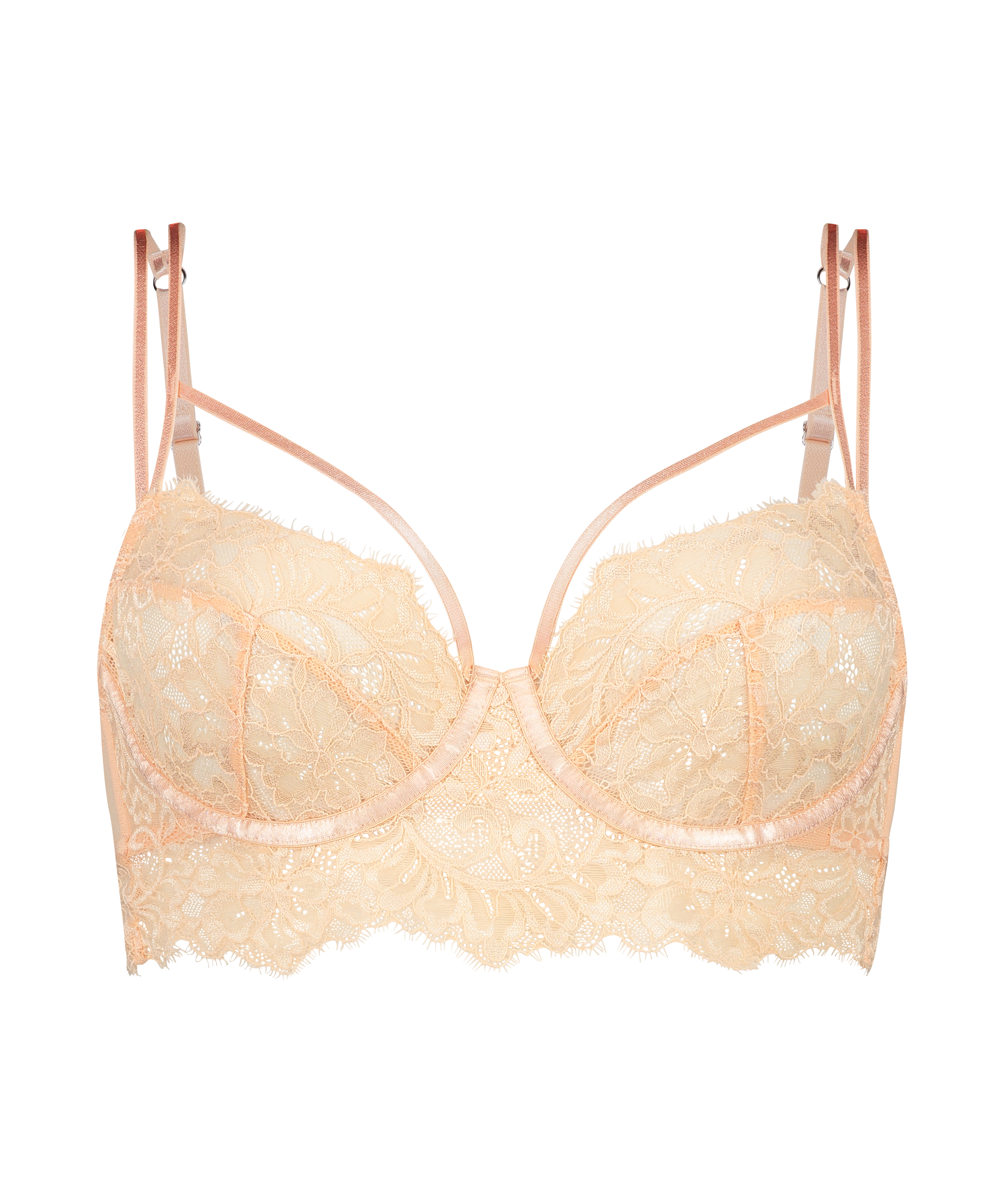 Ce soutien-gorge est votre nouvel incontournable ! Il est agrémenté d'une dentelle florale sensuelle et de détails à effet résille, dans un modèle longline. Les armatures assurent le maintien et les bretelles réglables garantissent un ajustement parfait. À combiner avec les articles assortis pour un look intégral !