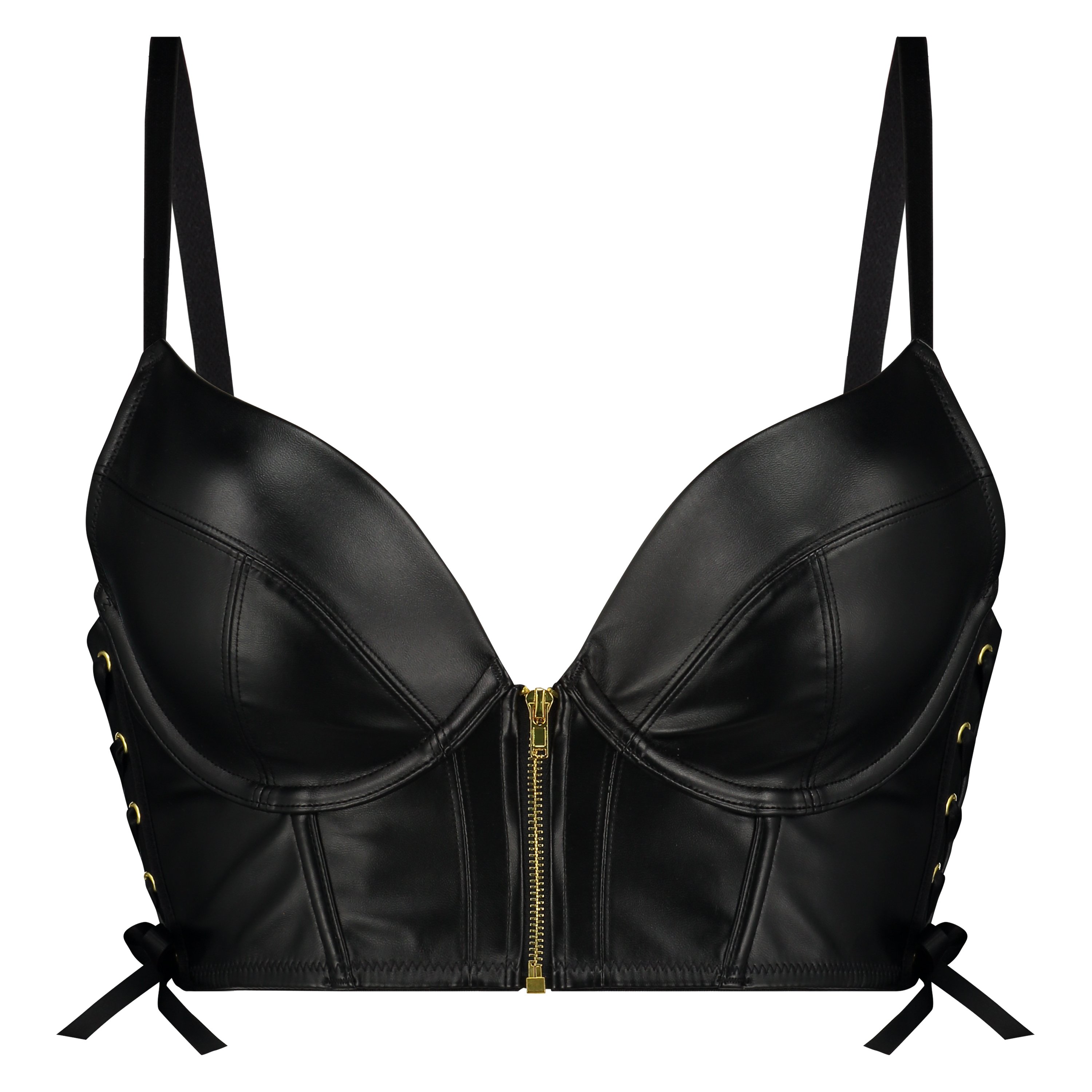 Sentez-vous super sexy et irrésistible avec ce soutien-gorge de la collection Private ! Il a un aspect et un toucher cuir et un motif à lacets sur le côté. Egalement doté d'une fermeture éclair à l'avant !