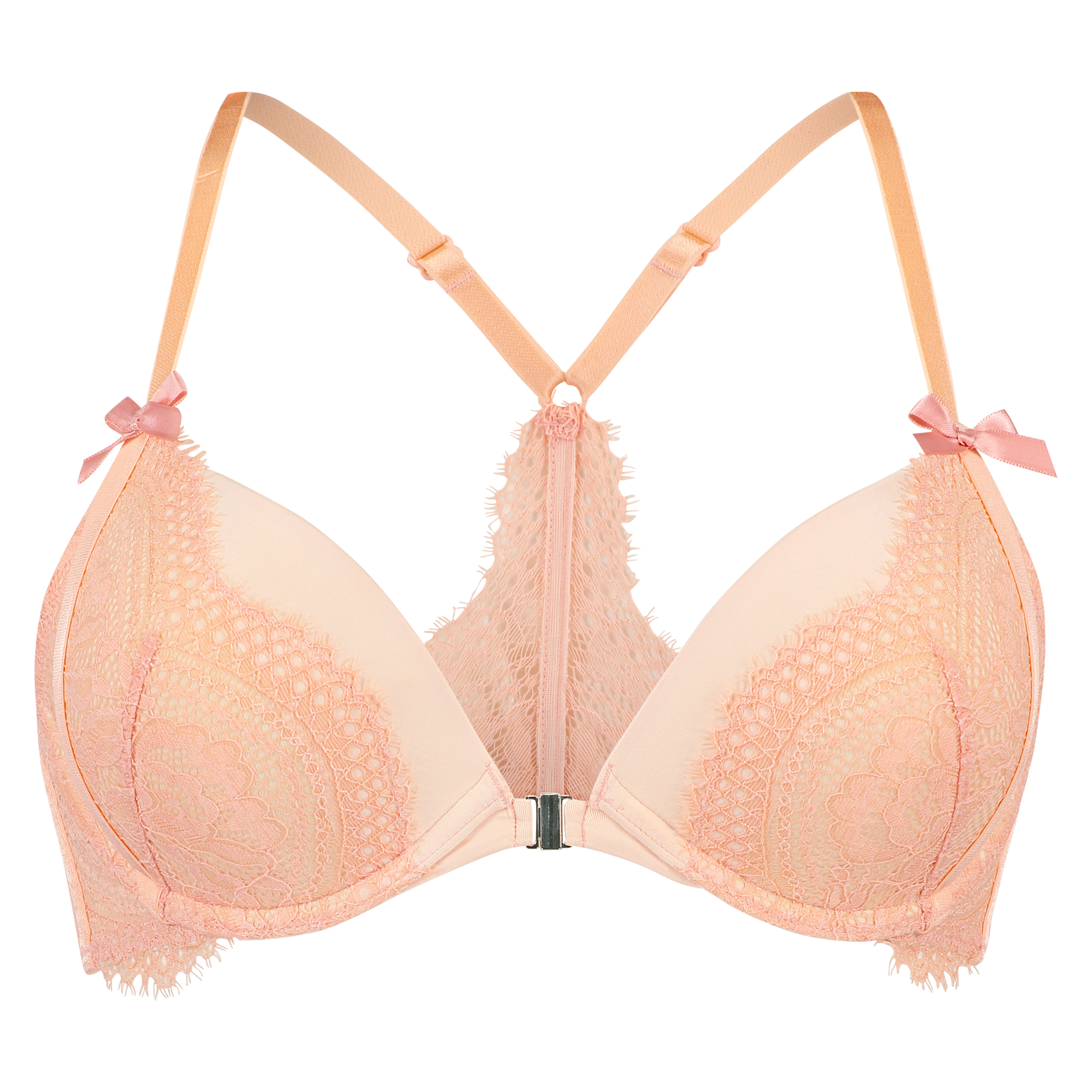 Donnez du peps à votre décolleté avec ce soutien-gorge à armatures préformé push-up ! Ce soutien-gorge sexy s'ouvre par l'avant et comporte un dos nageur. Il est doté de dentelle sur les bonnets et comporte un motif en dentelle à l'arrière. À combiner avec la culotte assortie pour parfaire votre ensemble !