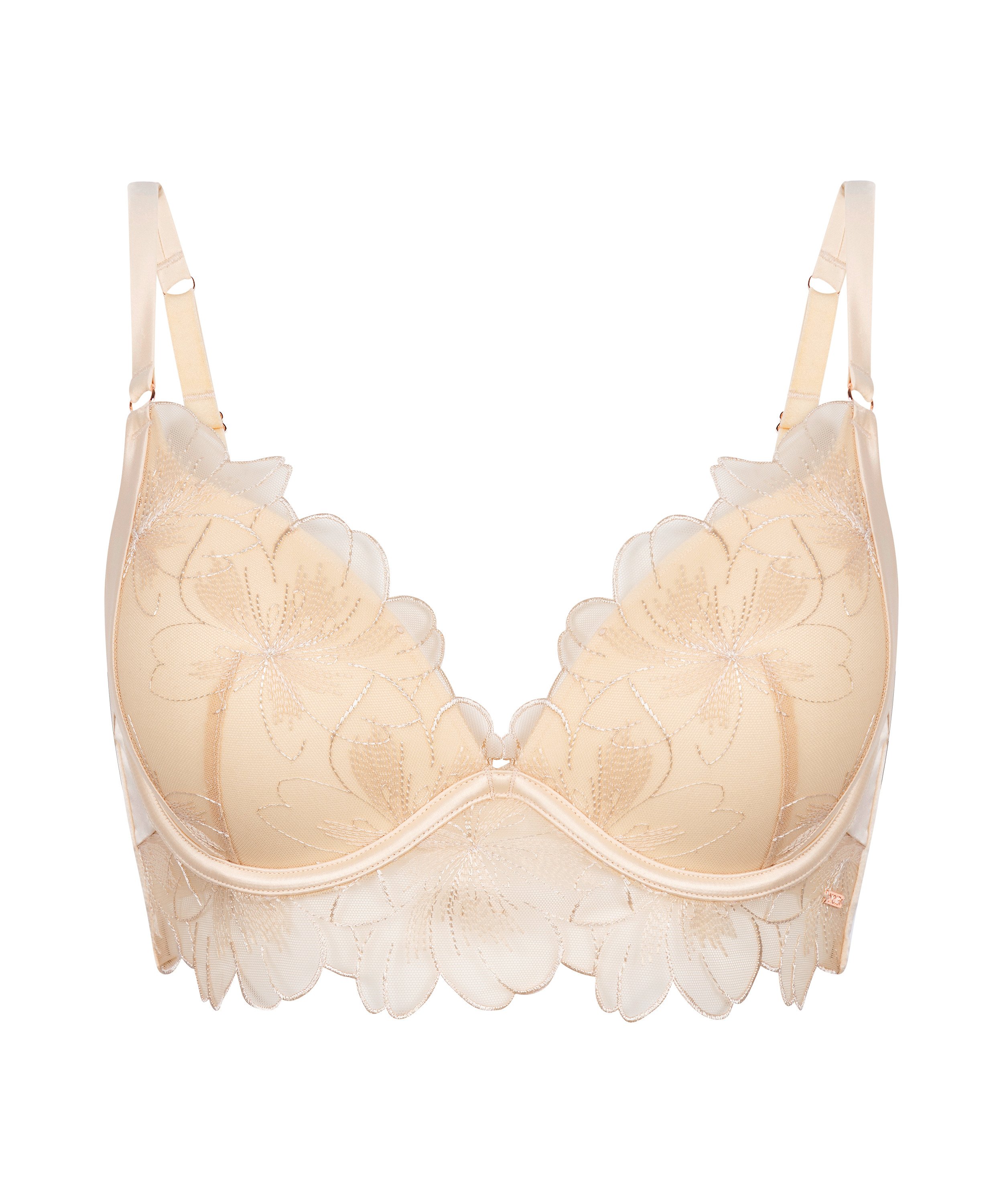 Verhoog je lingeriecollectie met de Emilia Padded Plunge Push-Up longline bh! Met delicaat bloemenborduursel en een gestructureerd ontwerp biedt het een gebeeldhouwde, flatterende pasvorm. De gewatteerde beugelcups en verstelbare bandjes zorgen voor ondersteuning en comfort, perfect voor een look die zelfvertrouwen en charme uitstraalt!