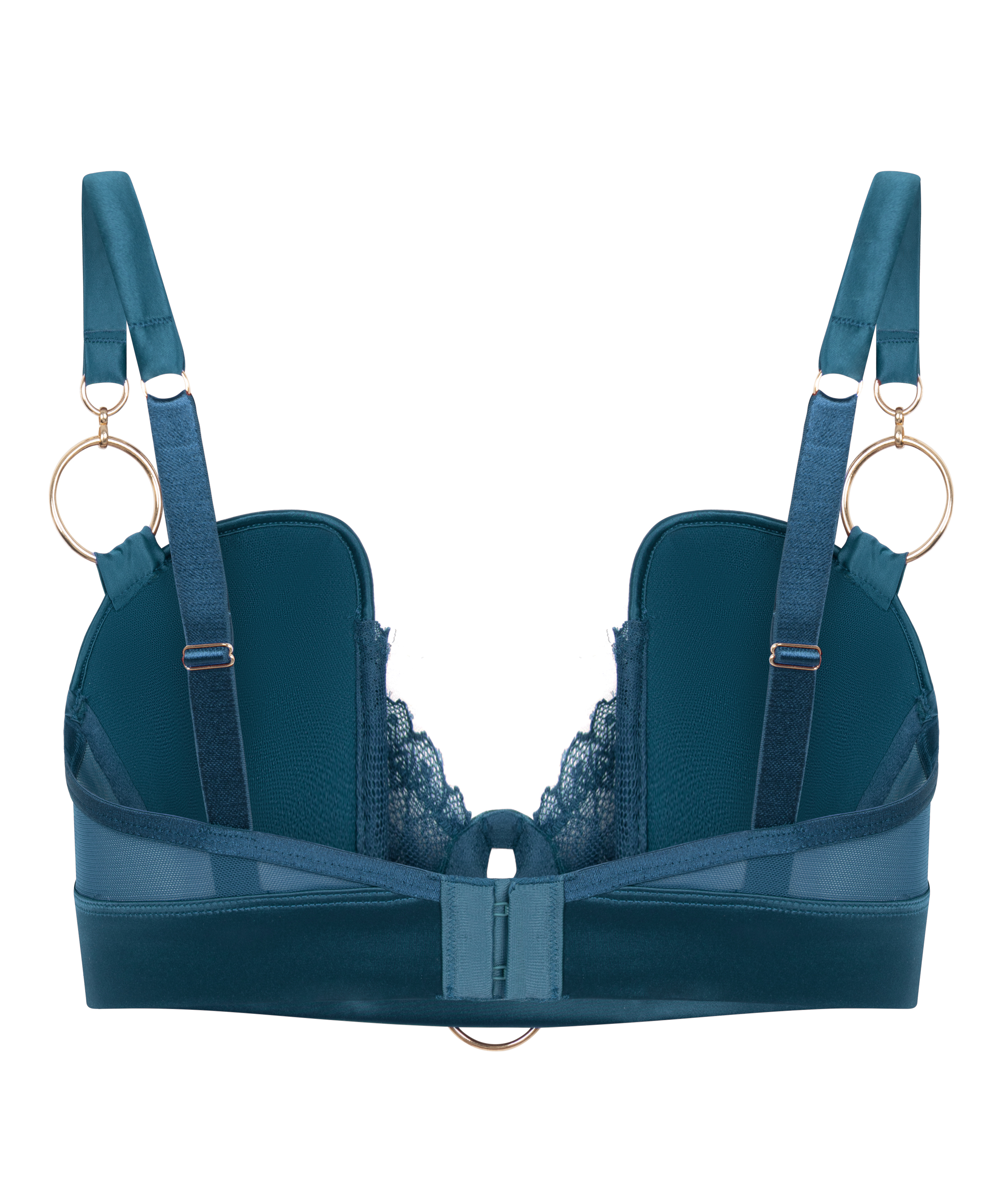Ajoutez une touche de luxe à votre lingerie avec ce soutien-gorge en satin, doté d'empiècements en maille transparente et d'élégants cerceaux dorés. Légèrement rembourré et doté d'armatures pour un effet liftant et une forme flatteuse. Les bretelles réglables assurent un ajustement parfait, tandis que le mélange de textures crée un look audacieux et féminin. Parfait pour les occasions spéciales ou pour rehausser votre style de tous les jours. Portez-le avec le string assorti pour un ensemble complet !