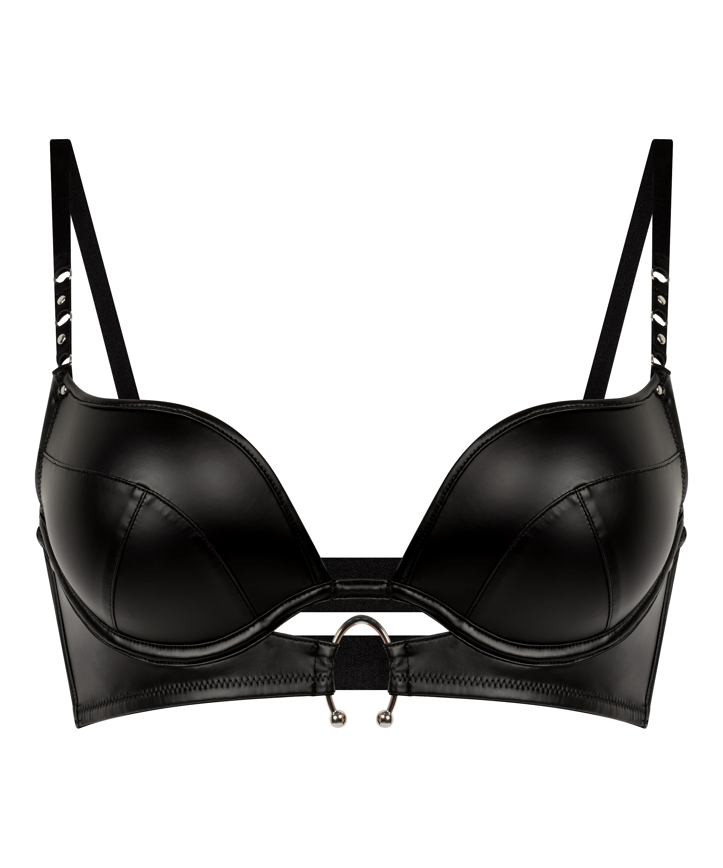 Toon je kracht met onze bh Zelda, waar gewaagd en perfectie samenkomen. Deze voorgevormde plunge-bh is ontworpen om te liften, vorm te geven en de aandacht te trekken. Hij is volledig bedekt met imitatieleer voor een strakke, opvallende look. De beugelcups bieden gestructureerde ondersteuning, terwijl de diepe halslijn je natuurlijke rondingen accentueert voor een gedurfd, zelfverzekerd silhouet. Combineer hem met het bijpassende broekje voor een complete look.