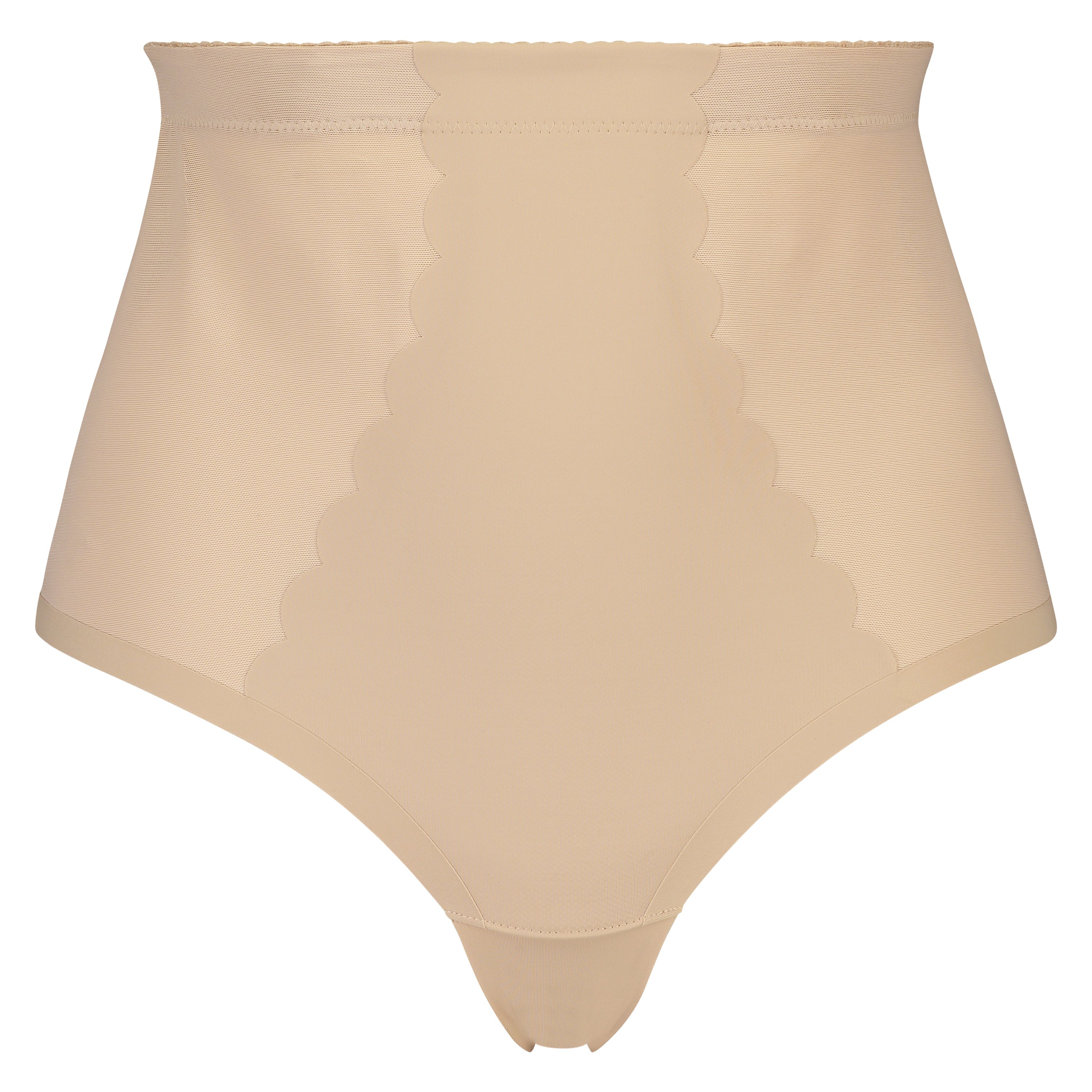 String taille haute avec gaine sculptante en dentelle festonnée - Level 3 - Beige