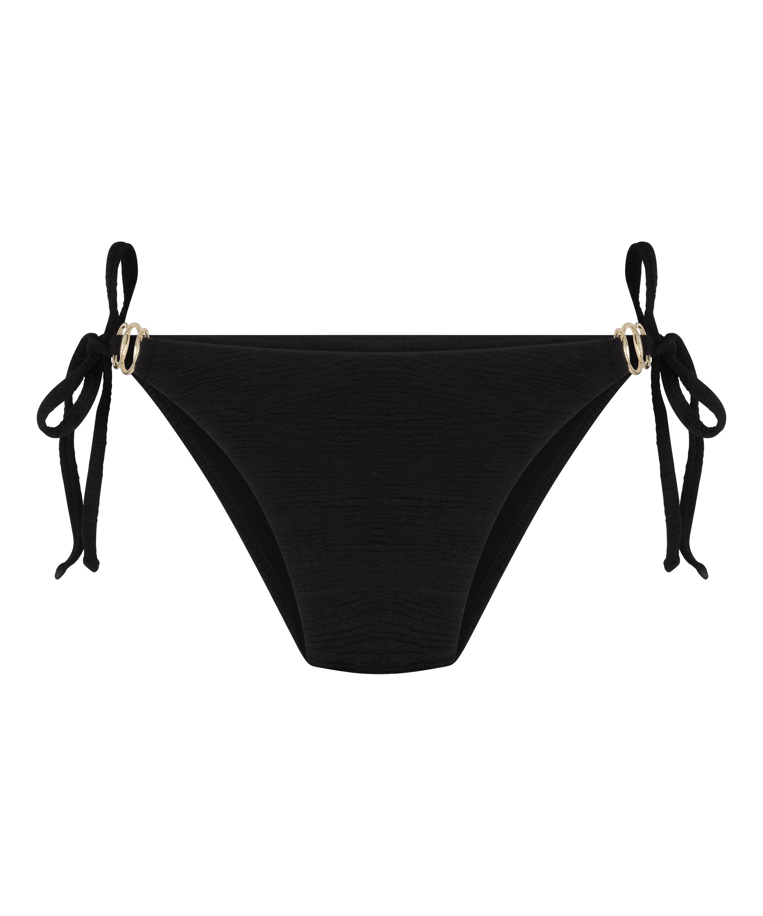 Heure dorée et glamour assuré : ce bas de bikini tanga noir apporte une touche élégante avec une note audacieuse. Conçu pour s’ajuster parfaitement, avec sa finition lisse et sa couvrance légèrement audacieuse, il offre une coupe flatteuse et un effet confiant et lumineux. Associez-le à votre haut de bikini préféré et laissez l'or parler.