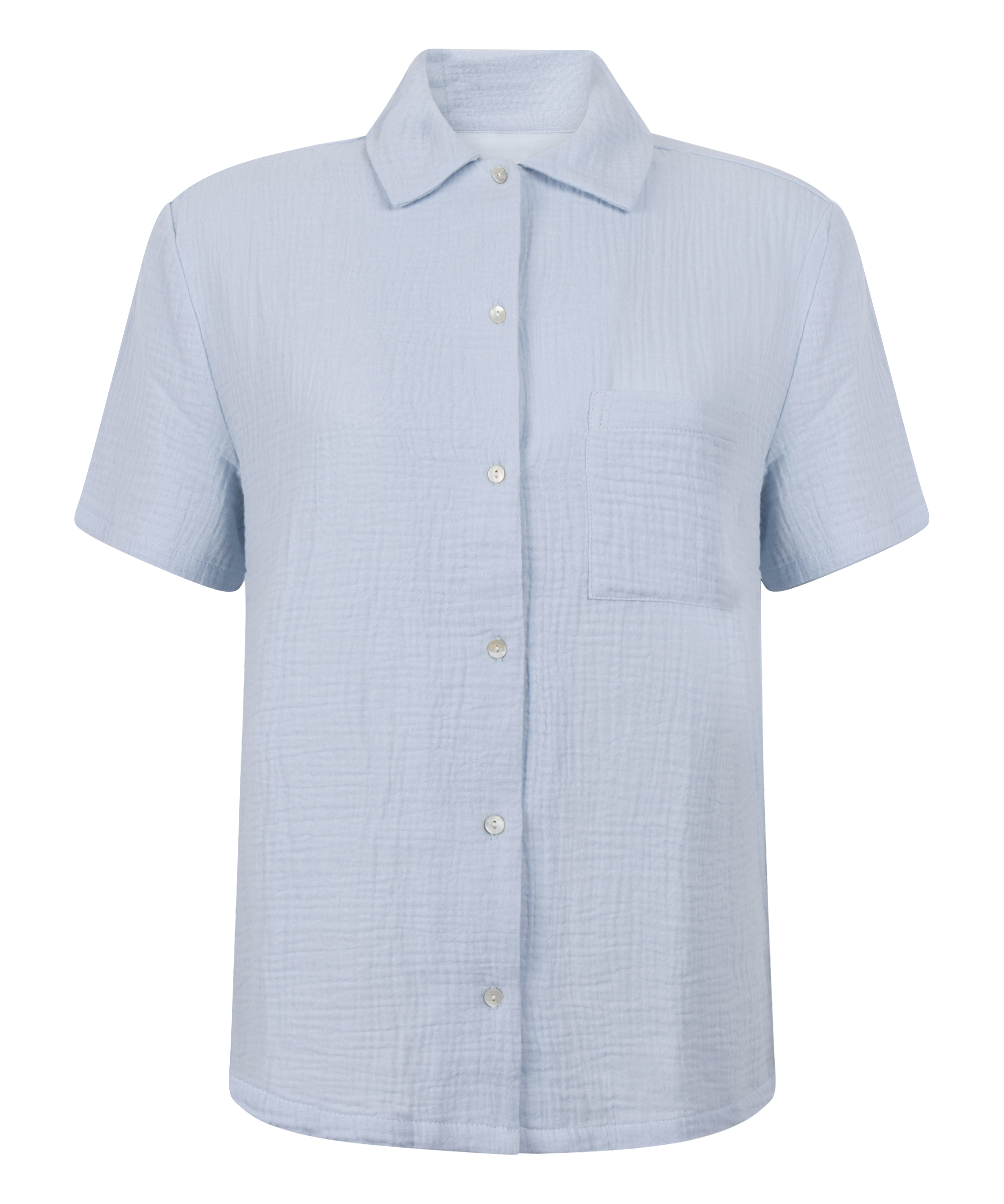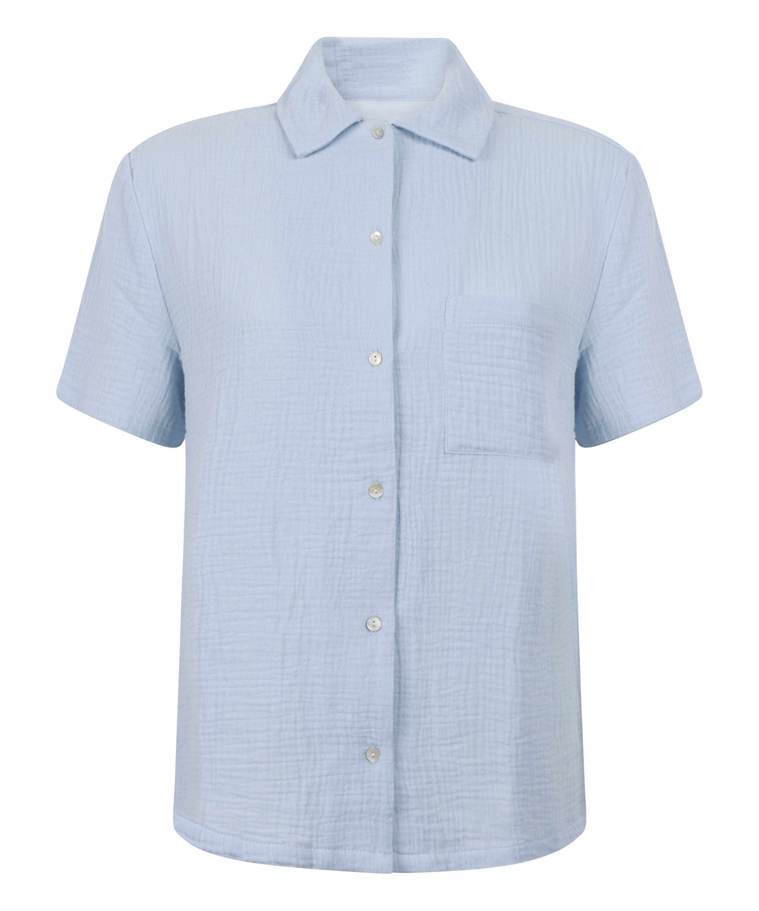 Vous vous sentirez à l'aise dans ce haut de pyjama classique avec des boutons sur le devant. Il est fabriqué dans une matière légère et respirante, parfaite pour les chaudes nuits d'été. Complétez votre look avec le pantalon assorti.