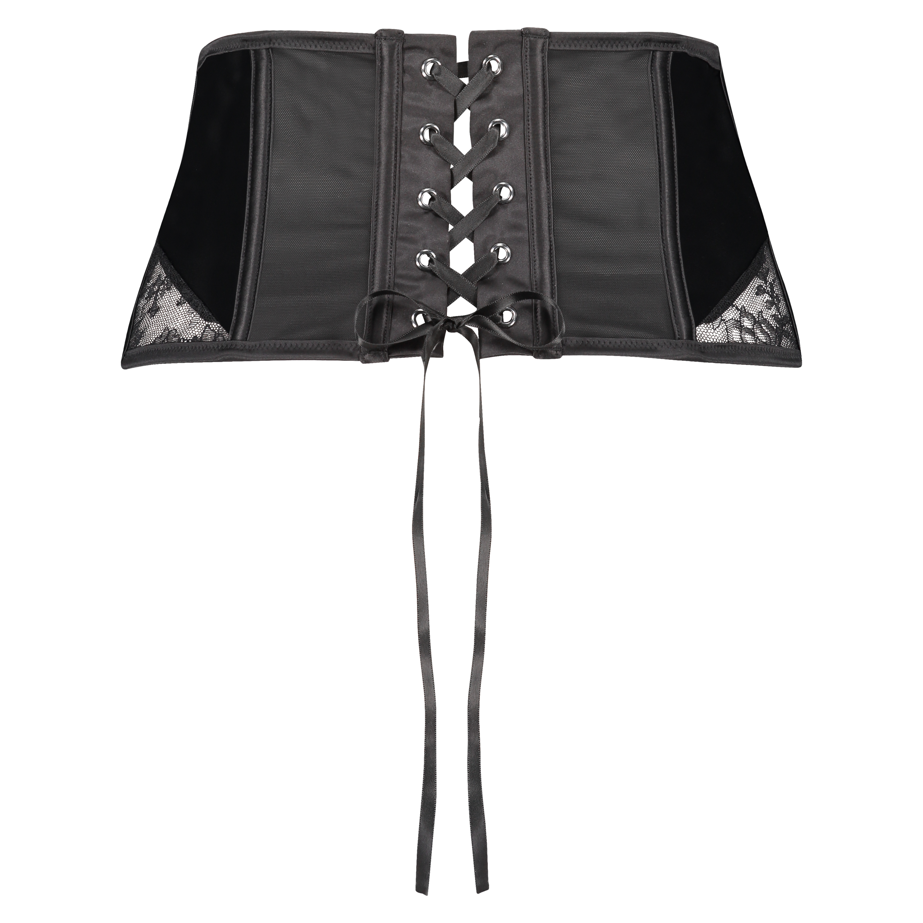 Complétez votre ensemble de lingerie avec ce waspee ! Le waspee est doté d'une ouverture métallique. L'avant est en dentelle qui est elle-même parachevée par des touches en strass. Le waspee est parachevé par des détails en mesh et en satin. Les détails sexy du maillage au dos complètent ce waspee ! Elément de la collection Noir.