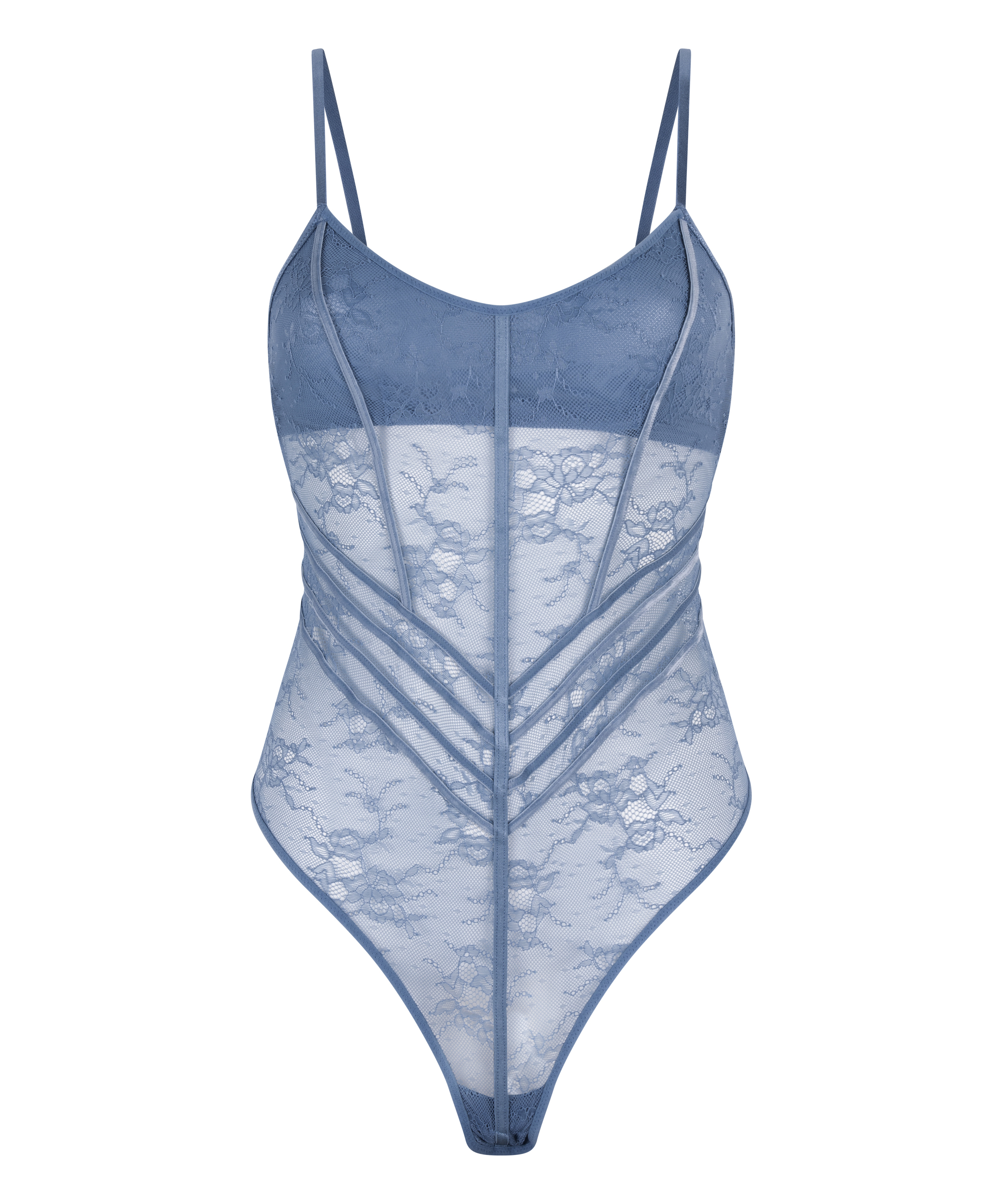 Ga voor elegantie met onze body Naya. Deze fantastische body met zijn romantische all-over kanten design accentueert je rondingen. De inzetten aan de voorkant geven hem structuur en definitie. Deze body is perfect om in laagjes te dragen of als statement lingerie.