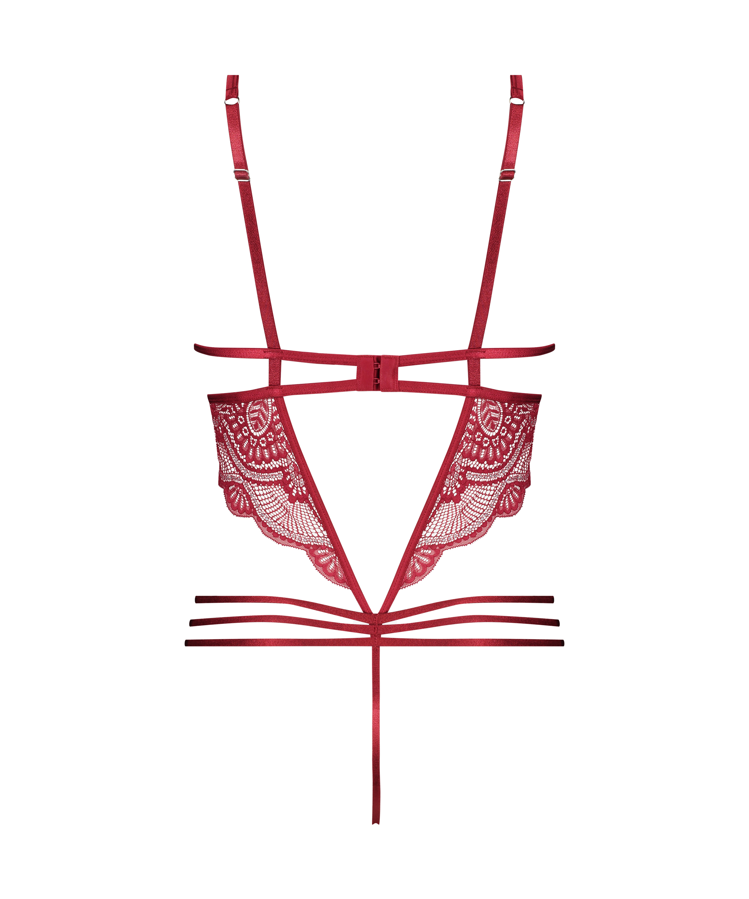 Deze body is uitgevoerd in kant, gecombineerd met een satijnen stof. De body heeft een beugel onder de cups. Bijzonder aan de body zijn de extra strappy details. Onderdeel van de Private Collectie.