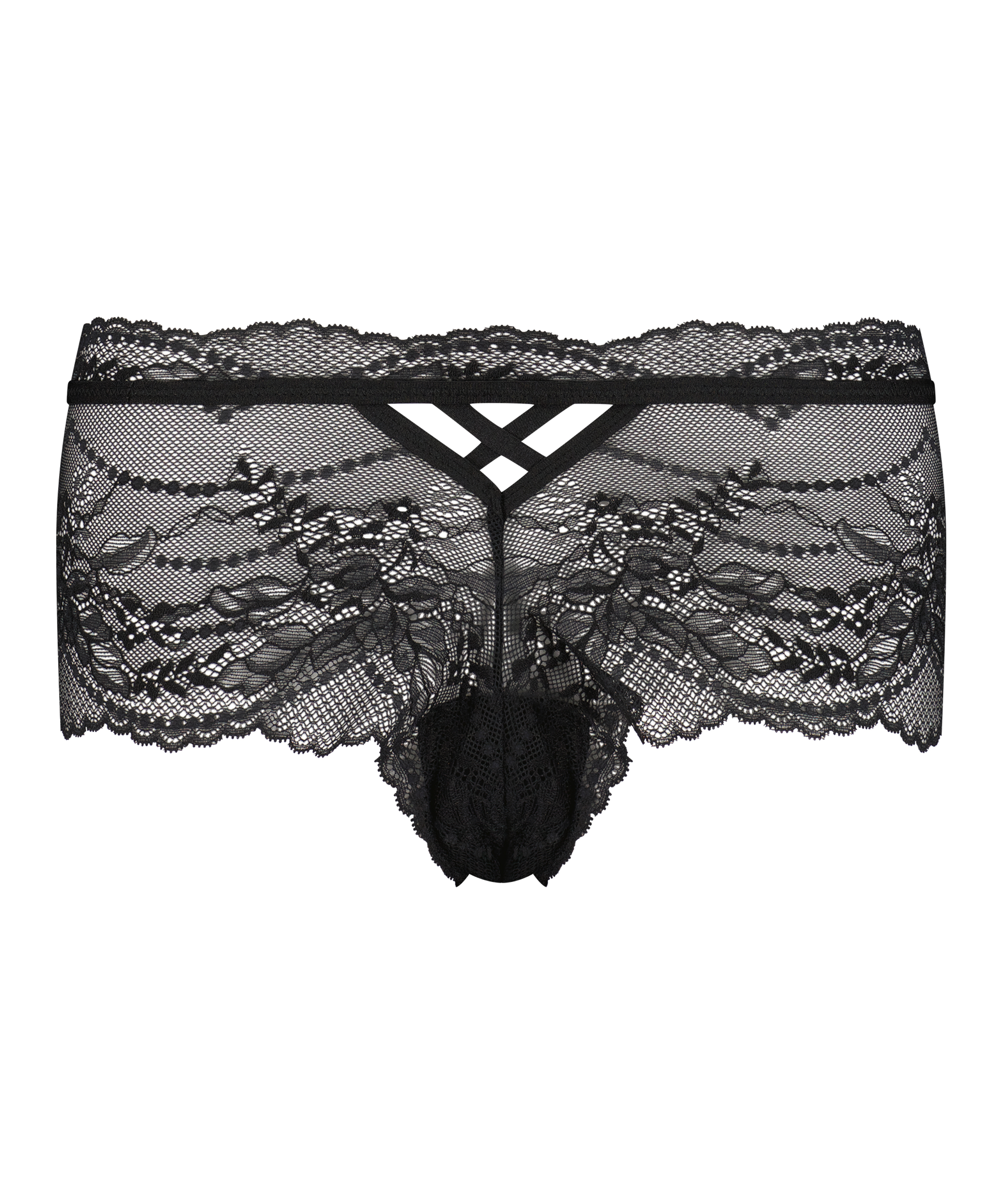 Voel je sexy en comfortabel met deze boxer! Met een all-over semi-transparante look en veel kanten details. Afgewerkt met extra strappy details. Mix en match met een bh om de set compleet te maken!