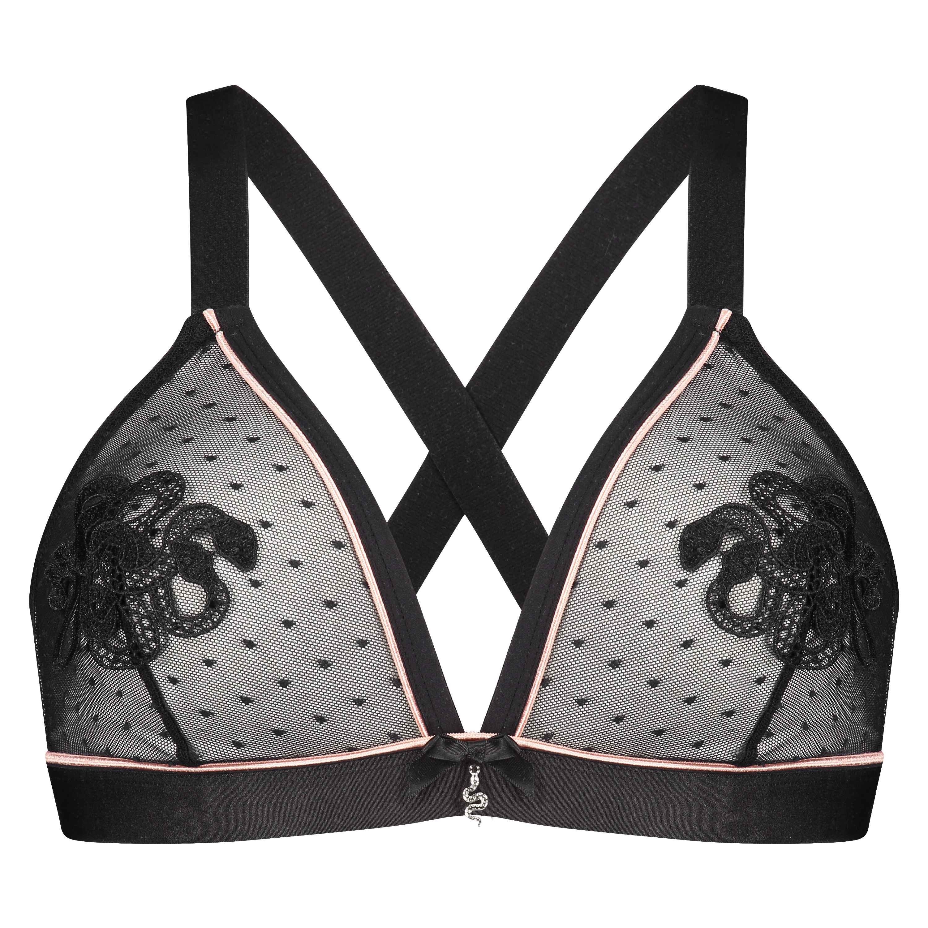 Voel je sexy in deze niet-voorgevormde bralette! De bralette is van sexy mesh en is afgewerkt met een slang op de cup. Combineer met het matchende broekje. Onderdeel van de I AM collectie.