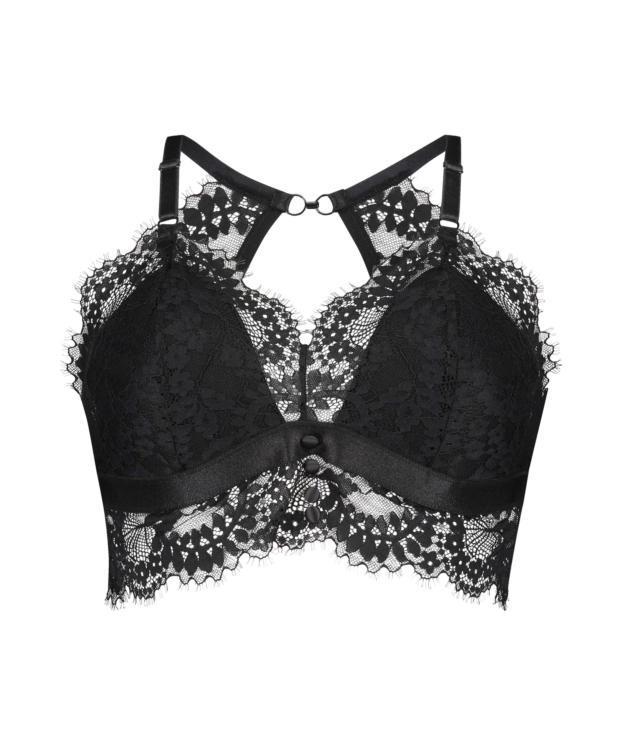 Straal in deze prachtige bralette! De bralette is bijna volledig bedekt met kant. De elastieke band onder de cups is breder, waardoor dit comfortabeler zit. De schouderbandjes zijn verstelbaar. Combineer deze mooie bralette met een bijpassende slip om je set compleet te maken! Onderdeel van onze Curvy Collectie.