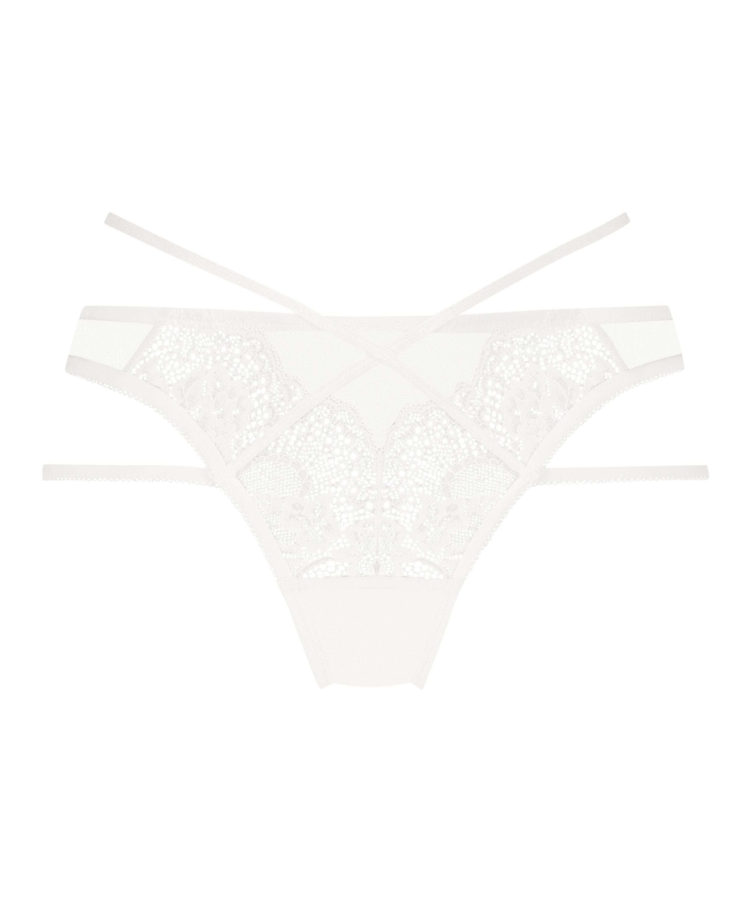 Deze schattige brazilian mag je niet missen! Voorzien van een volledig kanten look aan de voor- en achterkant. Extra details zijn de bandjes aan de voor- en zijkant. Het kruis is gemaakt van een superzacht materiaal voor een optimaal draagcomfort. Zoek de bijpassende bh!