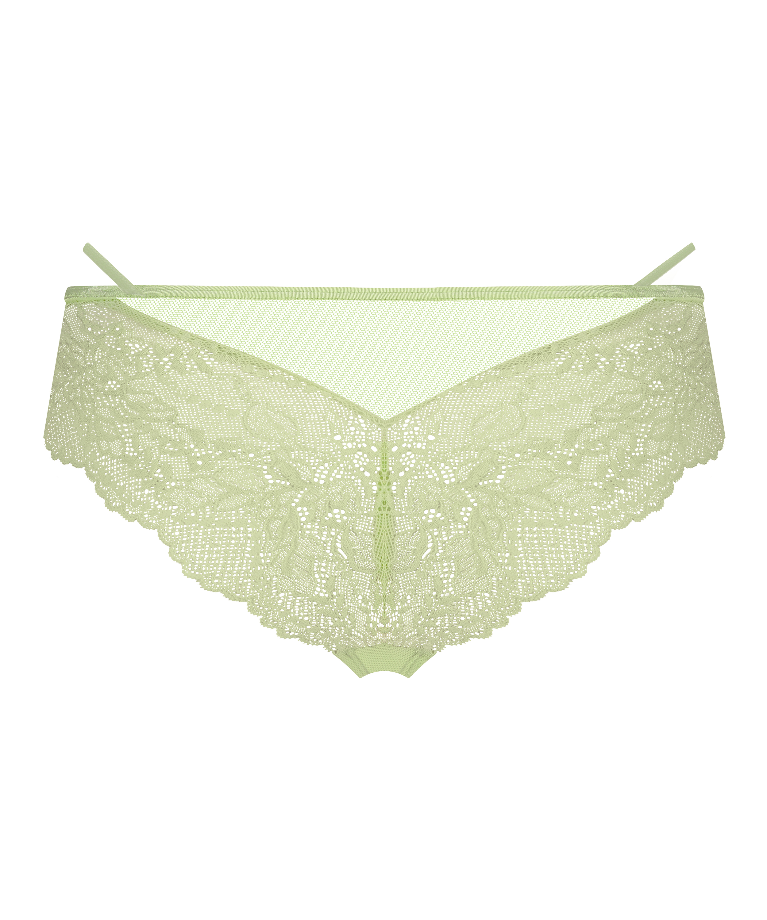 Deze brazilian heeft echt dat wauw-effect! De slip is met heel veel kant afgewerkt en bevat een strikje aan de voorzijde. Match met bijpassende bralette of bh om je set compleet te maken.