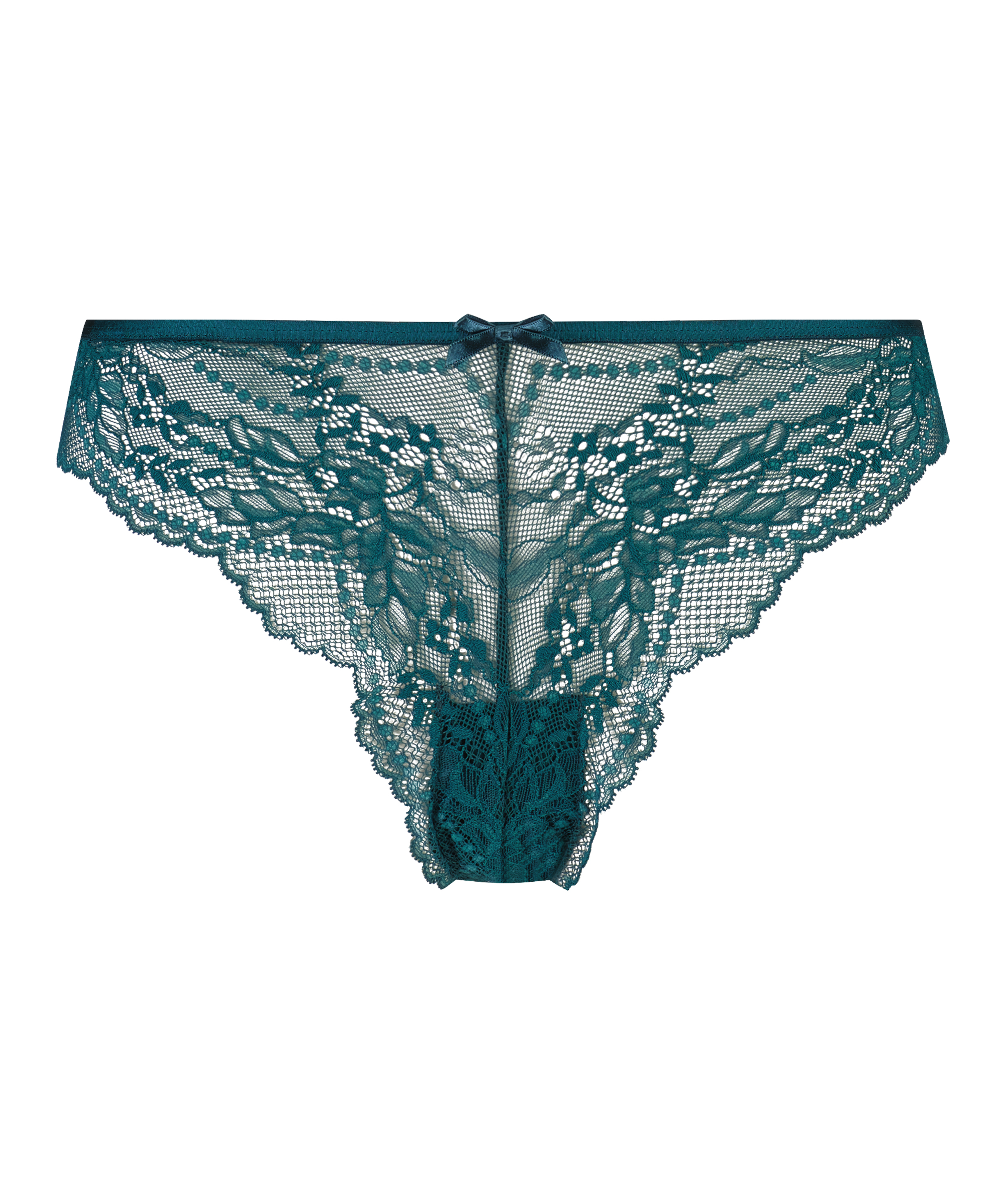 Maak jouw look sexy met deze brazilian. Hij is gemaakt van semi-transparant kant en het strikje aan de voorkant is een leuke finishing touch. Combineer met je eigen favoriete bh!