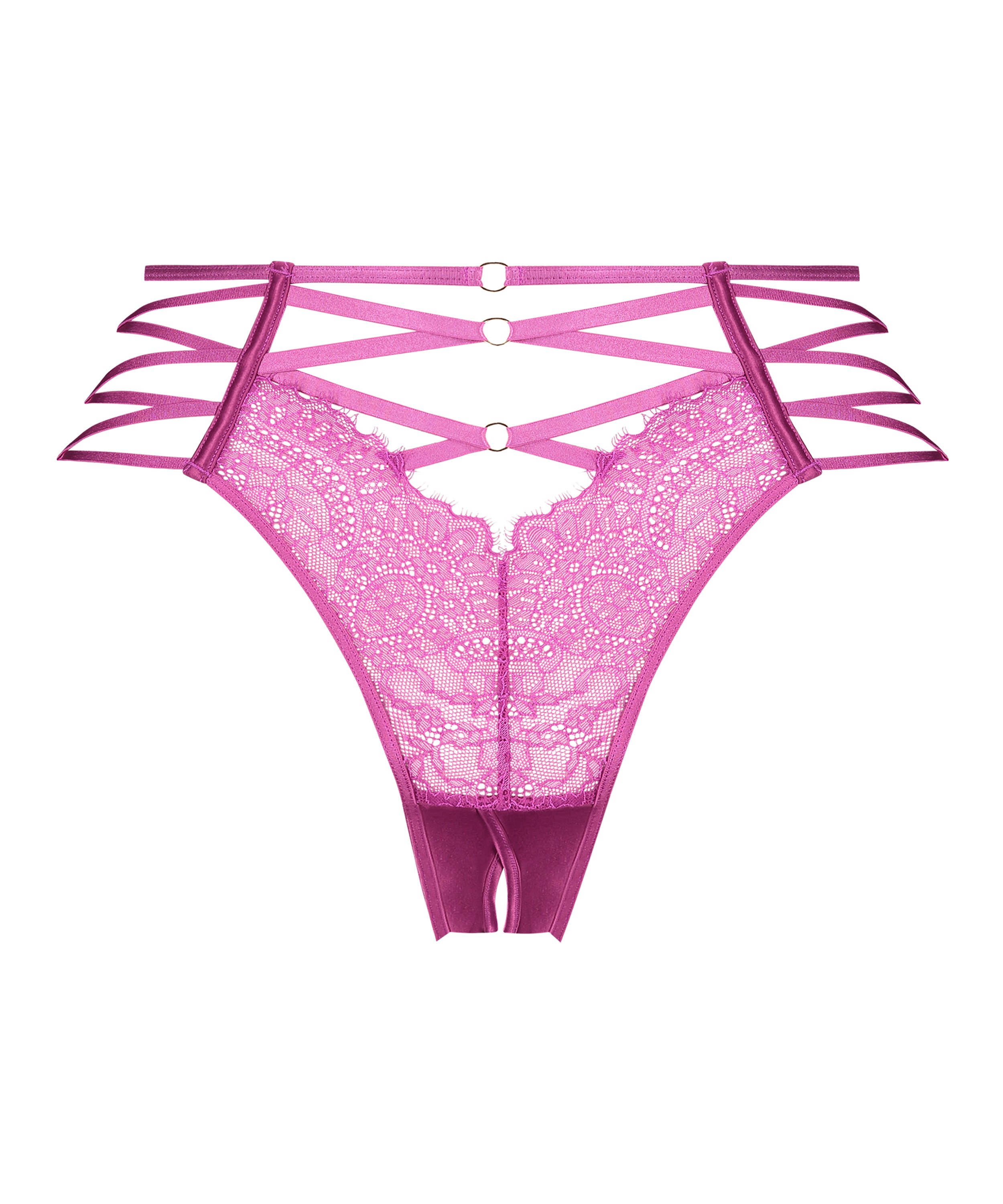 Maak het geheel spannender met deze unieke brazilian met open kruis. Met een algehele kanten look voor en achter, met veel strappy details en cut-outs voor ultieme sexiness. Het open kruis maakt het extra spannend. Maak de set compleet met de bijpassende bh!