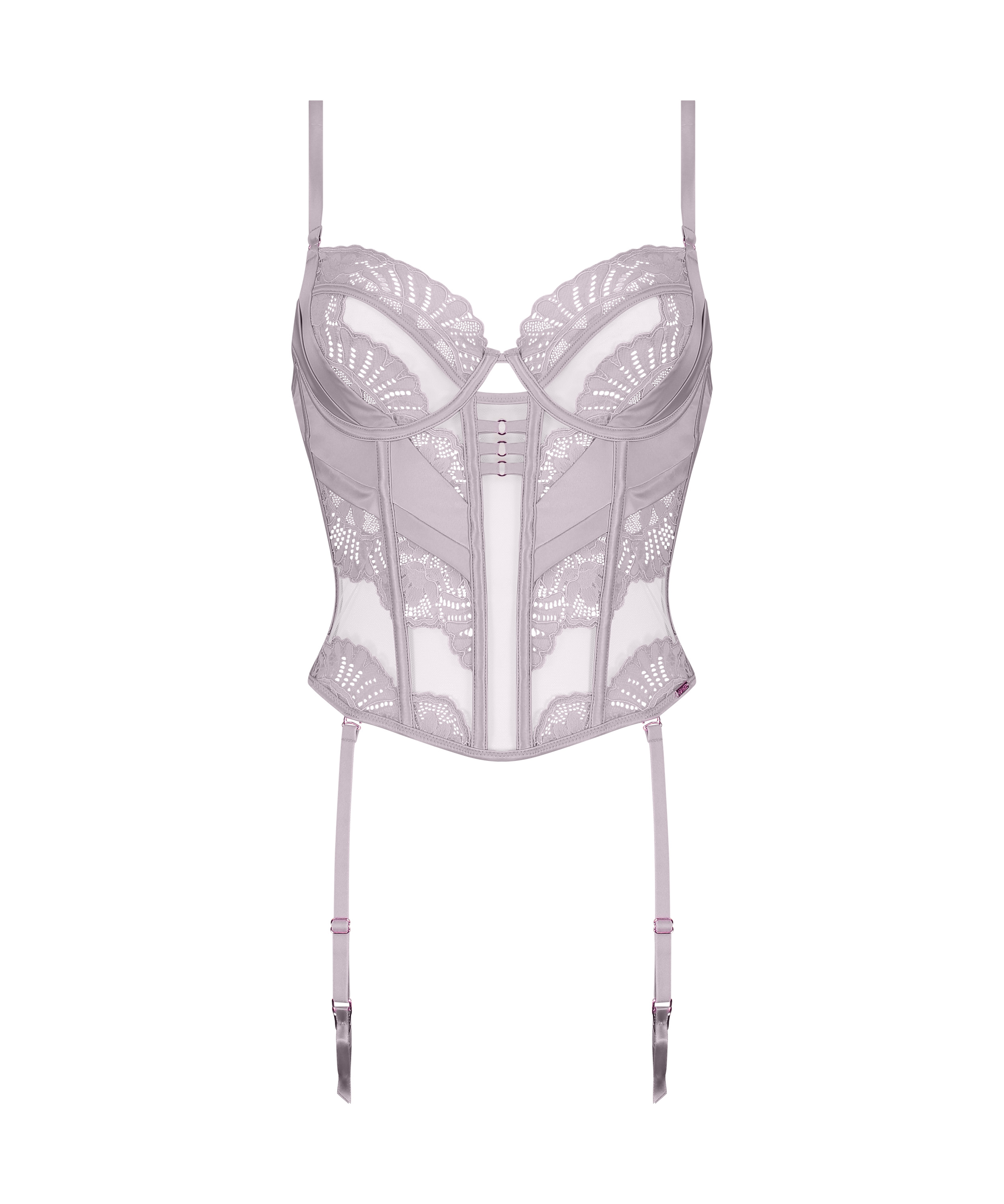 De elegante bustier Almendra is een nieuwe, prachtige kijk op een klassiek silhouet en zal al snel je favoriete lingerie item worden. Hij is afgewerkt met mooie bandjes, ondersteunende beugels en een transparante kanten stof. Dit is lingerie waarin je gegarandeerd zult opvallen. Als je een voorliefde hebt voor het matchen van je items, combineer je hem met de Almendra brazilian en string. Maak het geheel af met een paar stockings voor een prachtige, complete look! Onderdeel van de Noir-collectie.