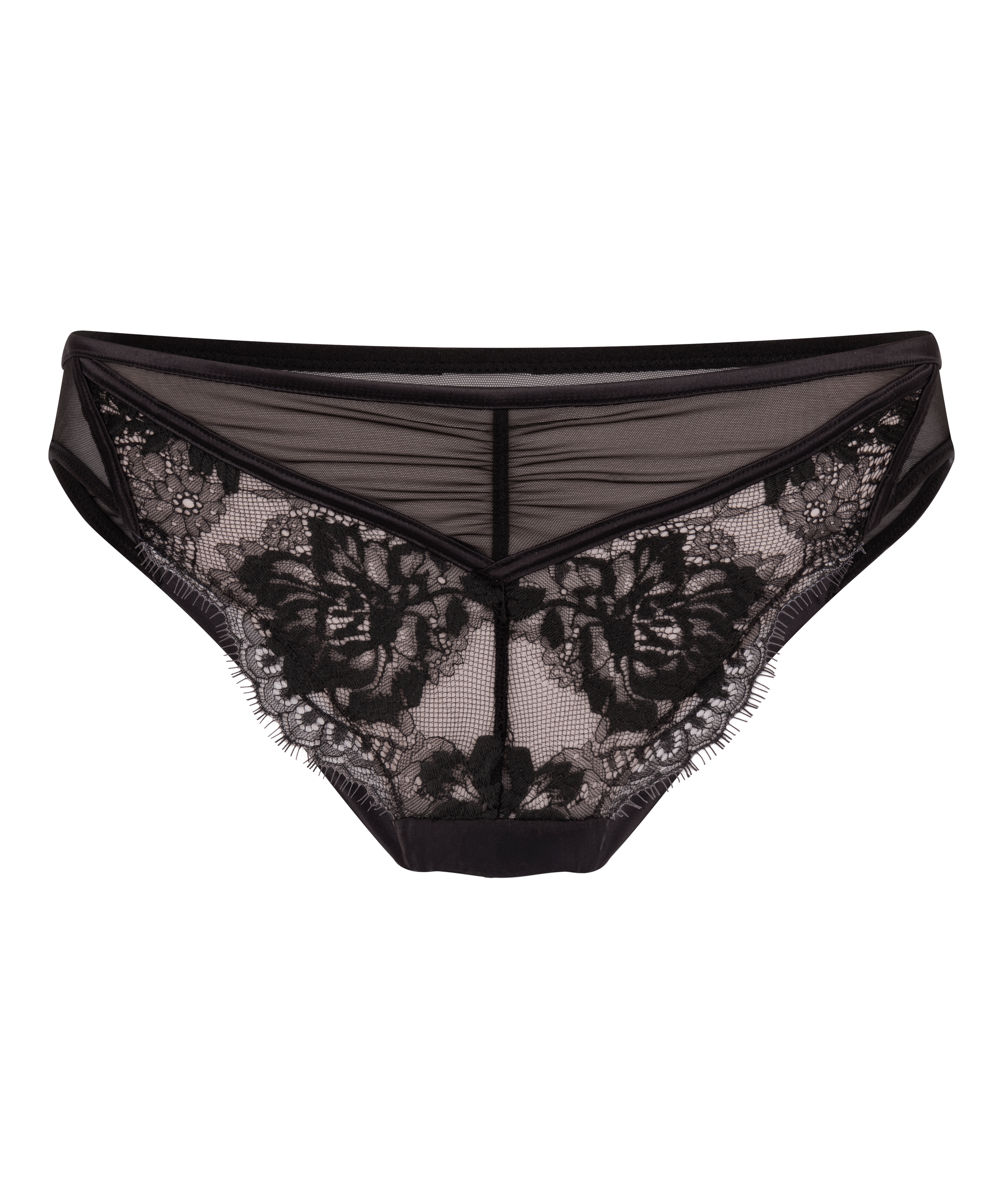 Deze hoog uitgesneden brazilian is romantisch met een twist en biedt textuur en zelfvertrouwen. De hoge pasvorm laat je benen langer lijken, terwijl het satijn zorgt voor een vleugje glamour. Het kant accentueert je rondingen, terwijl het mesh met ruches een speelse beweging creëert. Combineer hem met de bijpassende bh voor een complete look.