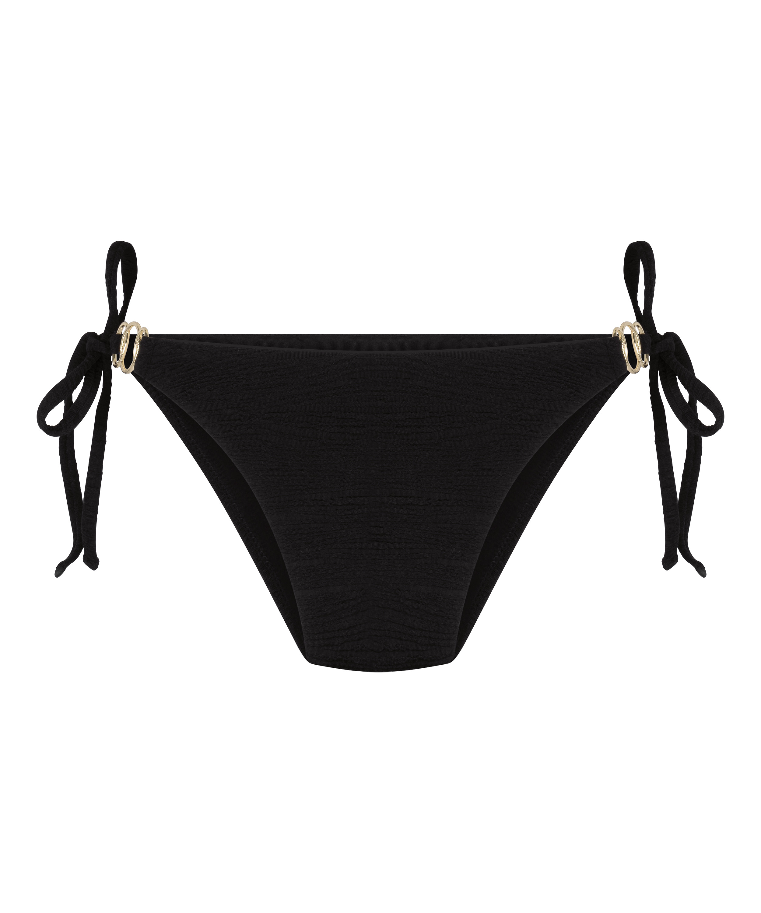 Golden hour, maar maak het glamoureus met dit zwarte tanga bikinibroekje dat een strakke uitstraling geeft met een brutale touch. Het is ontworpen om precies goed te zitten. Met zijn gladde afwerking en ietwat brutale dekking heb je een flatterende pasvorm en een zelfverzekerde gloed. Combineer het met je favoriete bikini topje en laat het goud voor zichzelf spreken.