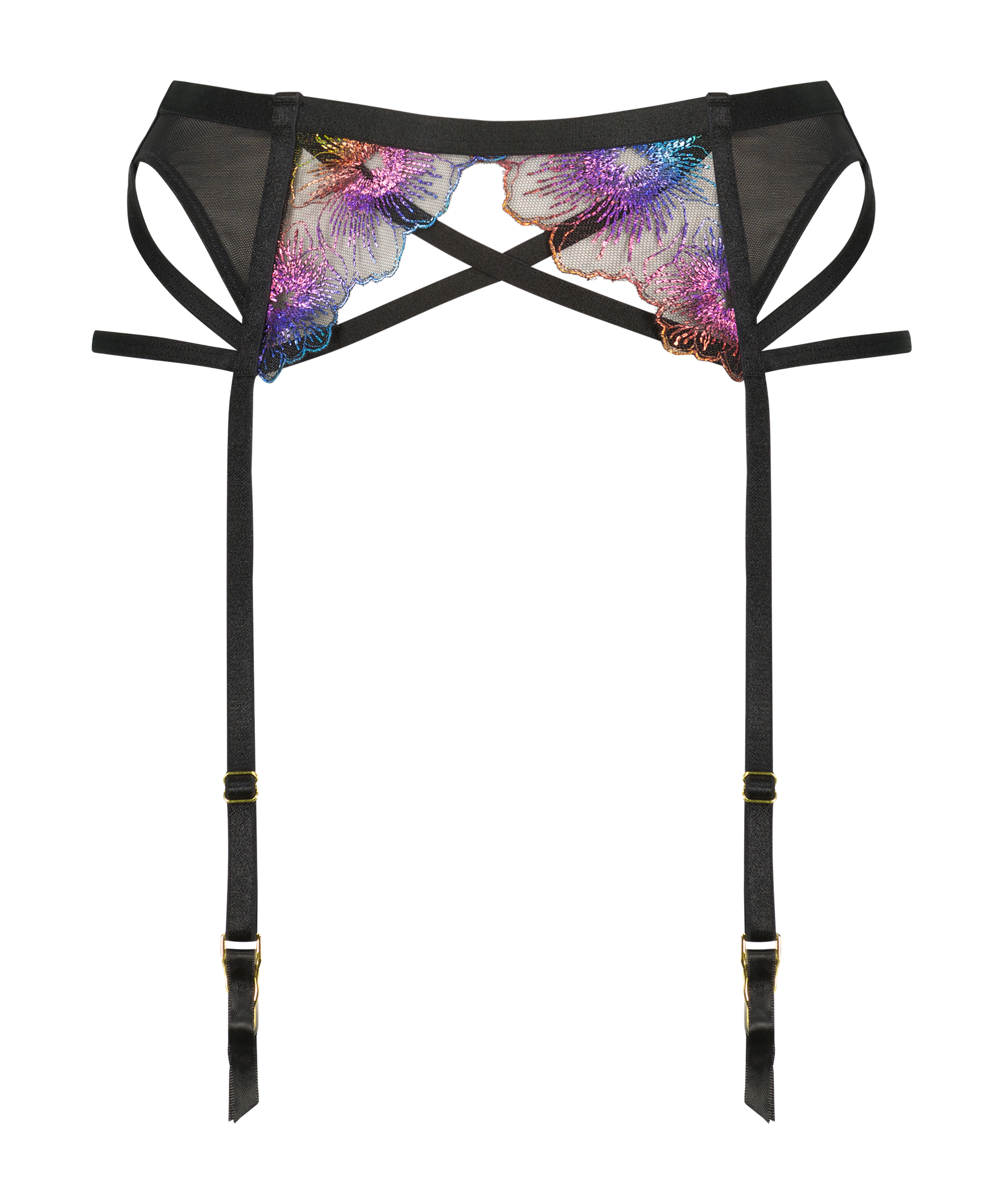 Complétez votre look Pride ! Ce porte-jarretelles a de jolies lanières et un détail super cool en lurex scintillant ! À combiner avec les articles assortis ! Article de la collection Private.