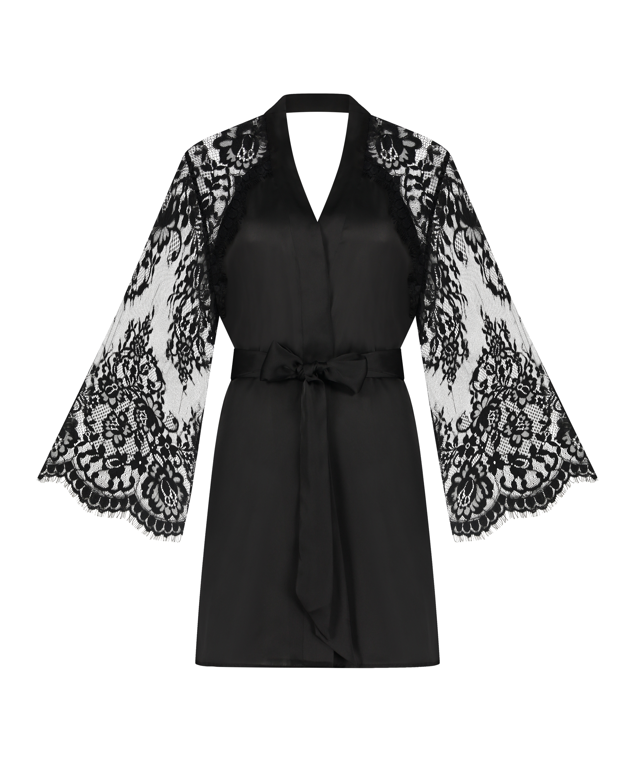 Deze kimono heeft een satijnen look-and-feel. De wijde, kanten mouwen maken je outfit super sexy. Iets wat je niet kan missen! Combineer met een mooie slipdress voor een complete look. Onderdeel van de private collectie.