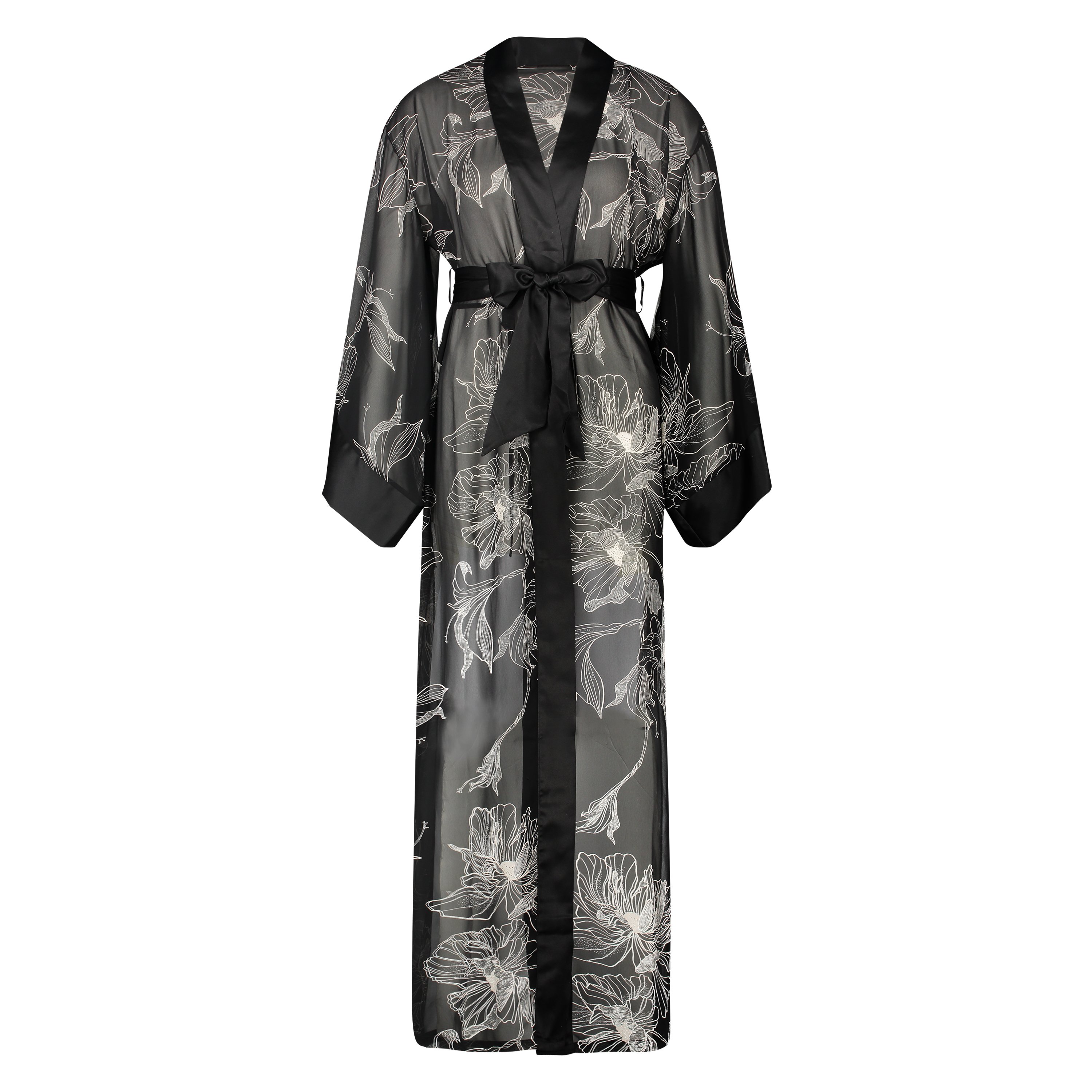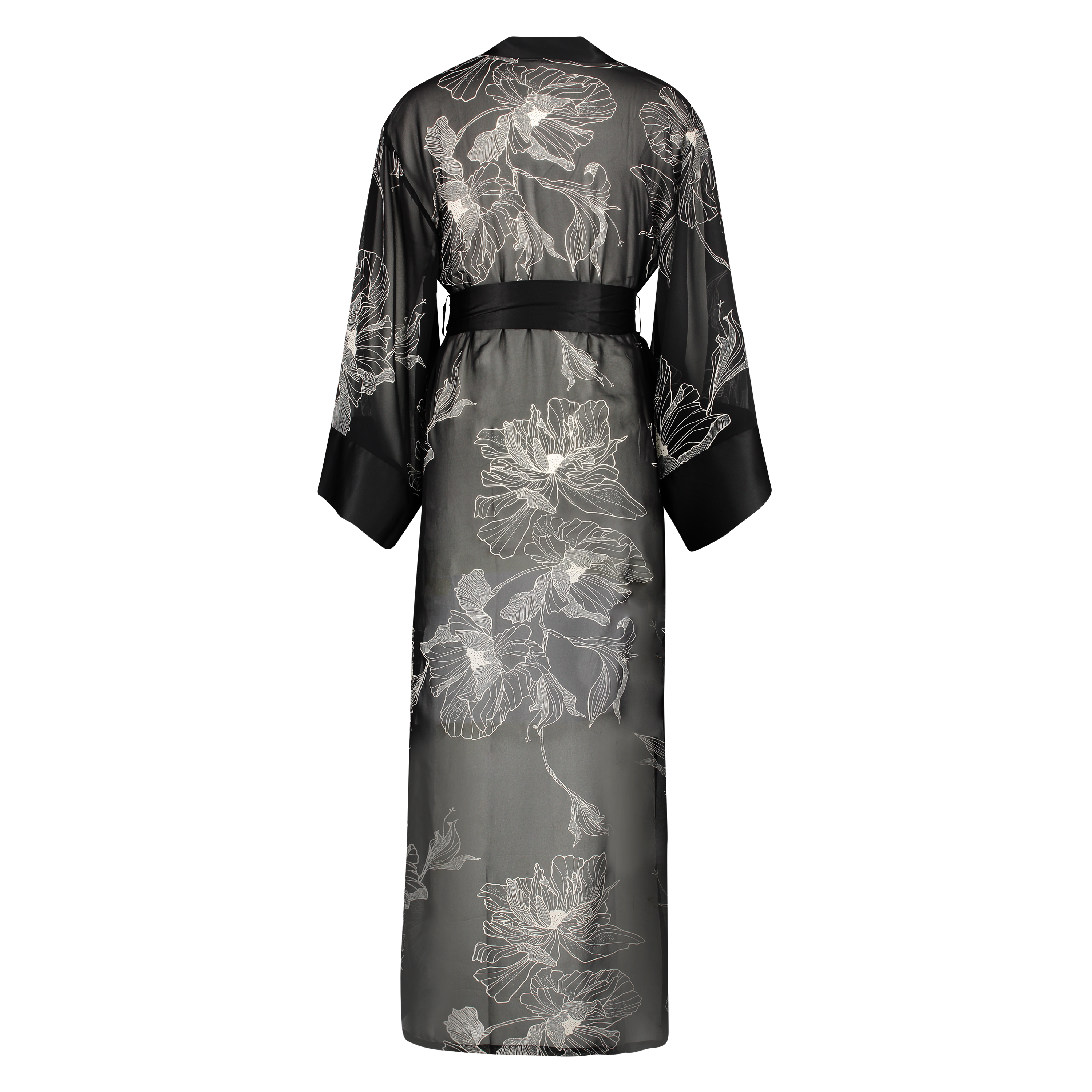 Kimono long chiffon lotus - Zwart