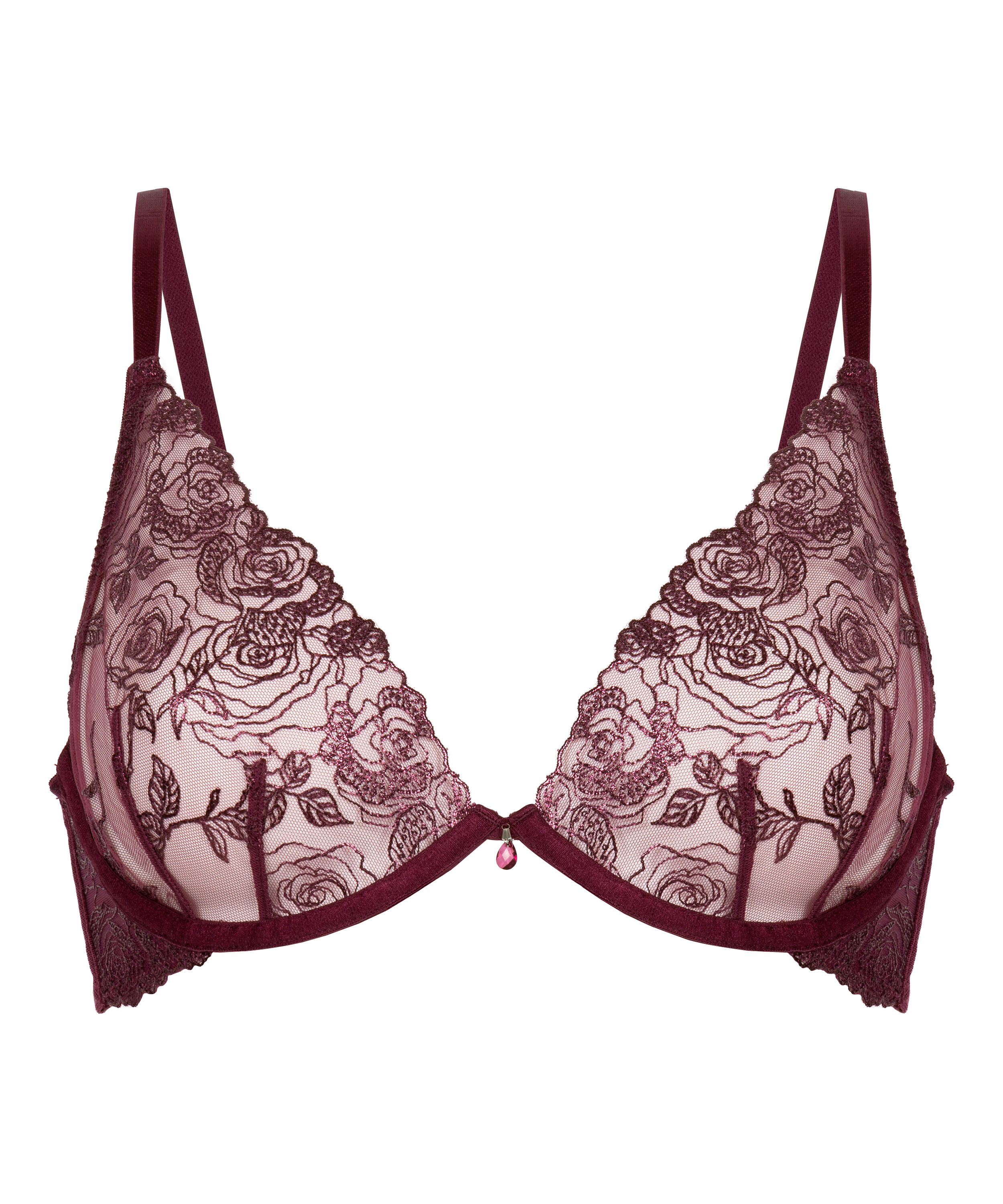 Ademend en mooi gedetailleerd: deze bh is ontworpen om je natuurlijke vormen te accentueren met een vleugje elegantie. Het is gemaakt van mesh met een geborduurd bloemenmotief dat textuur en romantiek toevoegt. De beugelcups bieden zachte ondersteuning en subtiele lift, waardoor de bh perfect is voor dagelijks gebruik of speciale momenten. Combineer hem met het bijpassende broekje voor een complete look.