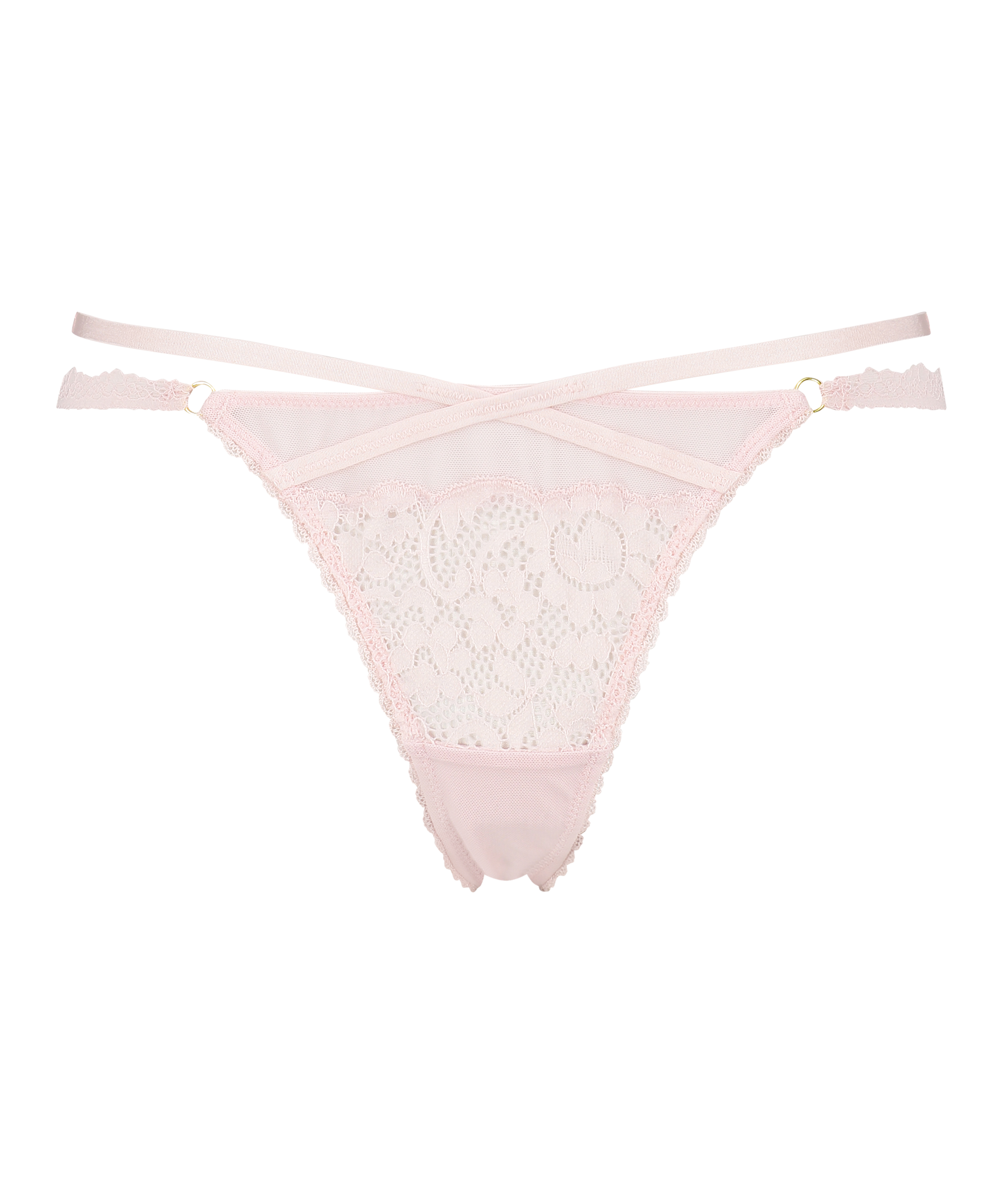 Voel je super sexy in deze fantastisch mooie string. Hij is voorzien van strappy details en heeft kleine ringetjes als detail. Match met een bijpassende bh.