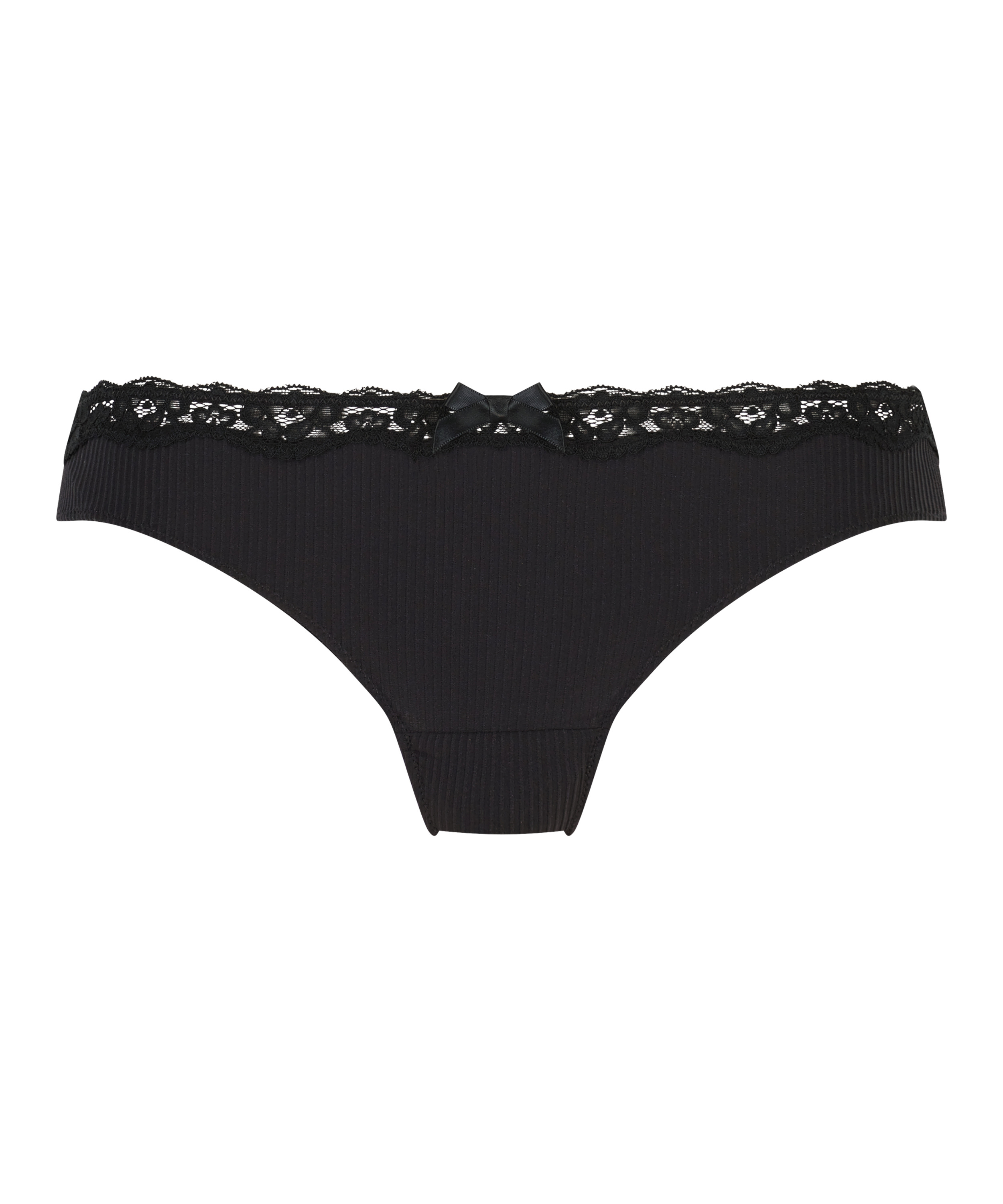 Ce string est fait d'un tissu côtelé et est fini avec une bordure en dentelle sur le dessus. Le petit nœud au centre complète parfaitement le string ! À combiner avec le soutien-gorge assorti pour créer l'ensemble parfait !