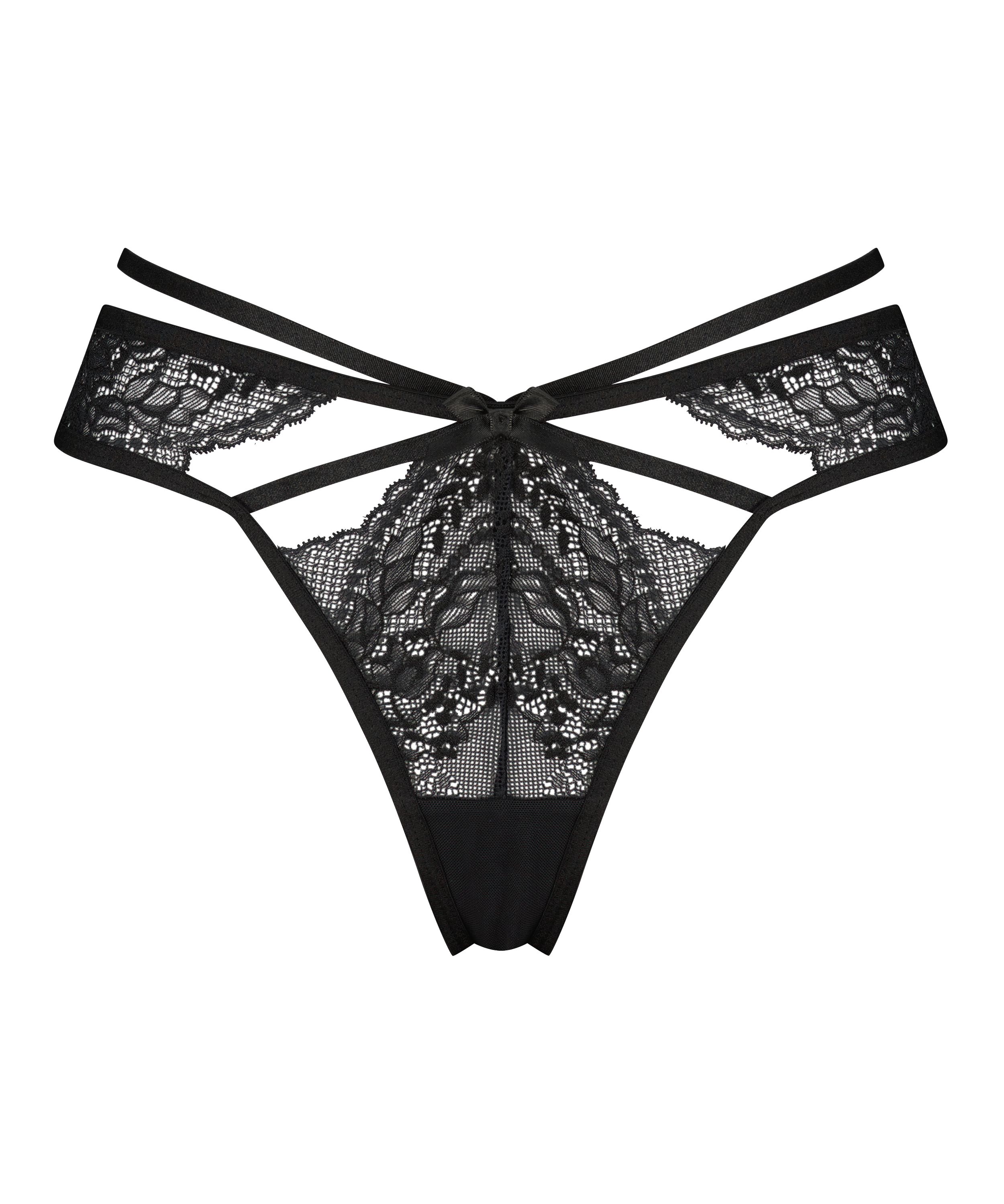 Voel je onweerstaanbaar in deze string! De string bevat veel kant en cut-out details. Daarnaast bevat de slip strappy details. Match met bijpassende bh.