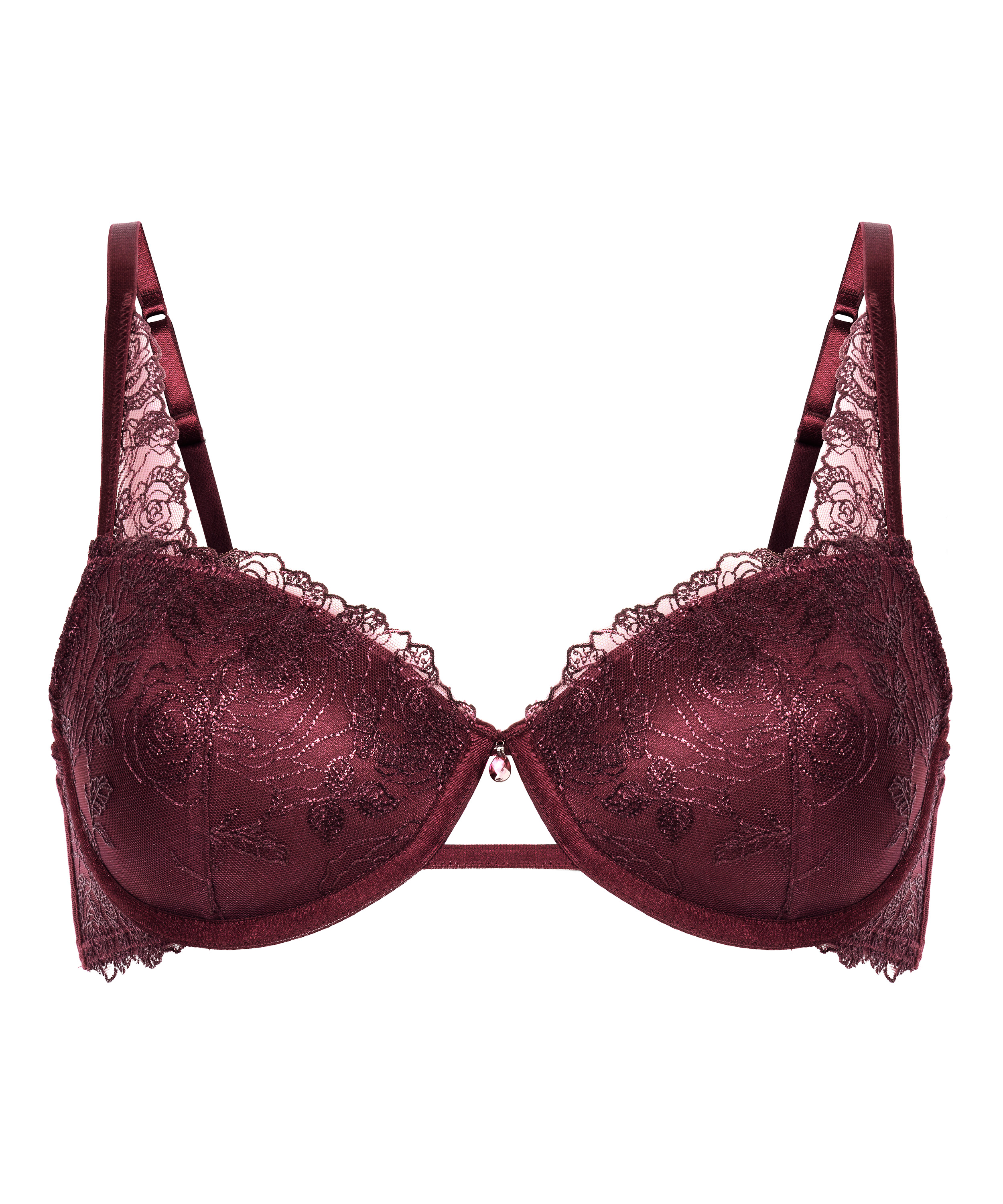 Deze bh is ontworpen om te schitteren en combineert gestructureerde ondersteuning met details. De cups zijn gewatteerd om je natuurlijke vormen te verbeteren, terwijl de beugel een zachte lift biedt. Hij is gemaakt van mesh met geborduurde bloemen en biedt de perfecte balans van glamour en romantiek. Combineer hem met het bijpassende broekje voor een complete look.