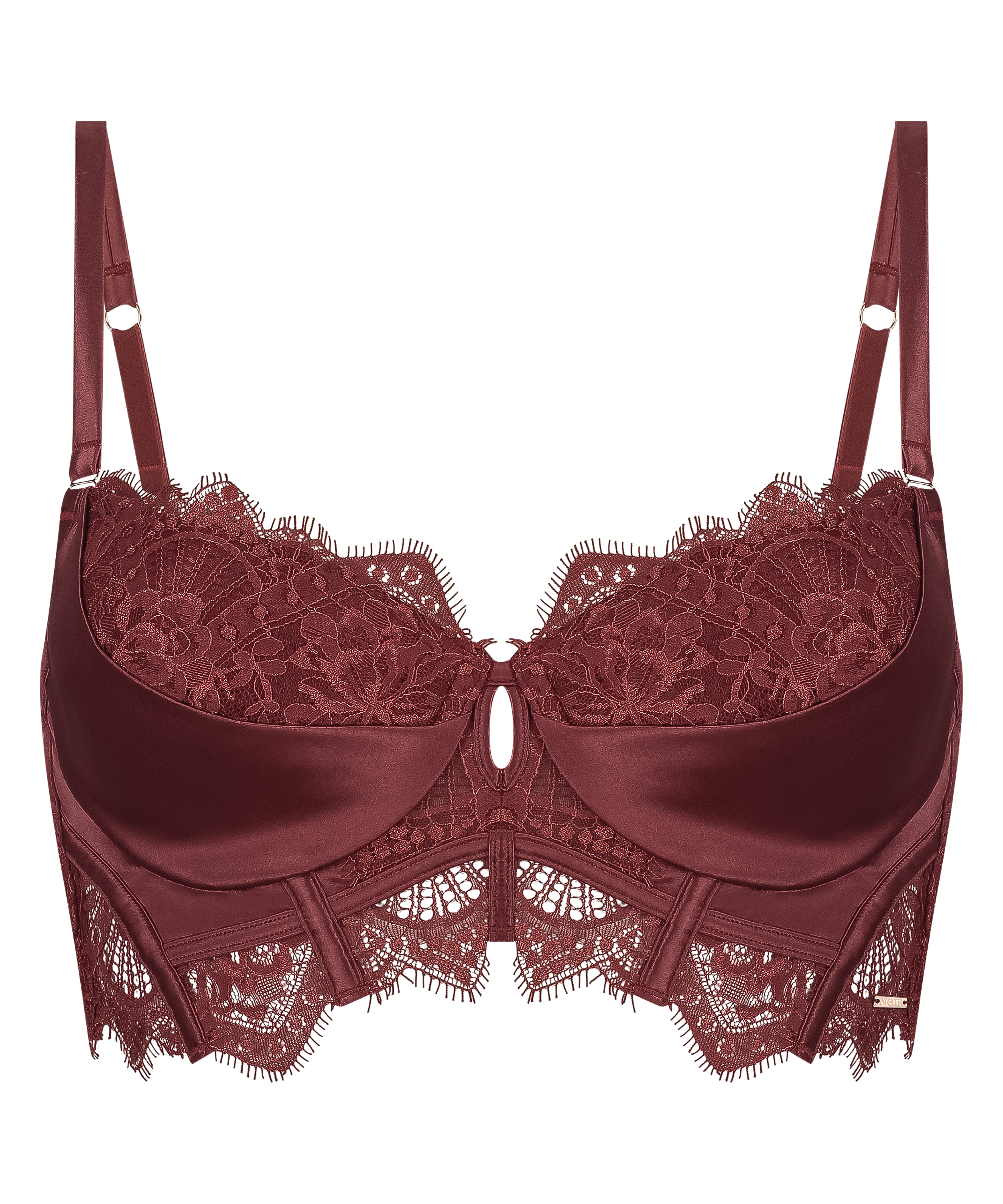 Voel je verleidelijk in deze voorgevormde longline beugel bh! De bh is afgewerkt met details van kant, mesh en satijn en heeft hierdoor een luxe uitstraling! Het kant loopt door tot op de bandjes. Onderdeel van de Noir collectie.